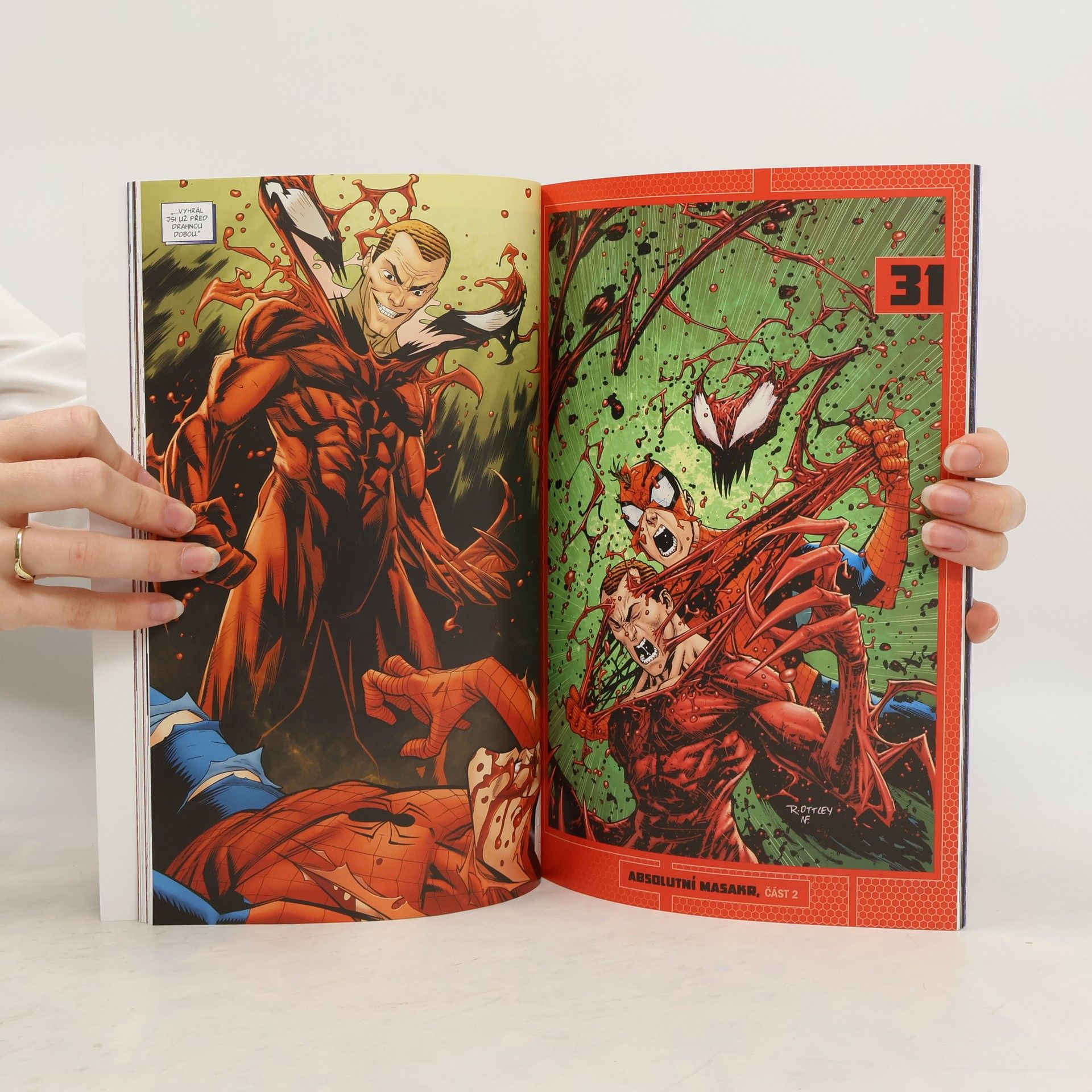 Spider-Manův život uprostřed otřesů! Petr se těžce vyrovnává s rozhodnutím Mary Jane a opravdu nepotřebuje nástup dalšího padoucha. A do toho se ještě objevuje… nový a vylepšený Carnage! Jenom Spider-Man se může postavit mezi rudého zabijáka v jeho nejděsivější podobě a mladého Dylana Brocka. A aby se všechno ještě zhoršilo, každý, kdo kdy byl jakkoli spojený se symbiontem, se stává lovnou zvěří! Včetně Normana Osborna, bývalého Red Goblina! Dokáže Spider-Man zachránit Normana před Carnagem… a chce to vůbec udělat? Plus: Dosud nevyprávěné příběhy o šíleném řádění Red Goblina! Popadněte svou nejnovější gobliní výzbroj a vytáhněte rudý ohoz, protože Red Goblin opět vyráží do akce! Obsahuje sešity Amazing Spider-Man (2018) č. 29–31 a Red Goblin: Red Death č. 1, jejichž autory jsou Nick Spencer, Patrick Gleason, Rob Fee, Sean Ryan, Francesco Manna, Ryan Ottley, Pete Woods, Ryan-Anthony Height, Marc Deering, Cliff Rathburn, Carlos Lopez, Nathan Fairbairn, Dono Sánchez-Almara a Protobunker.