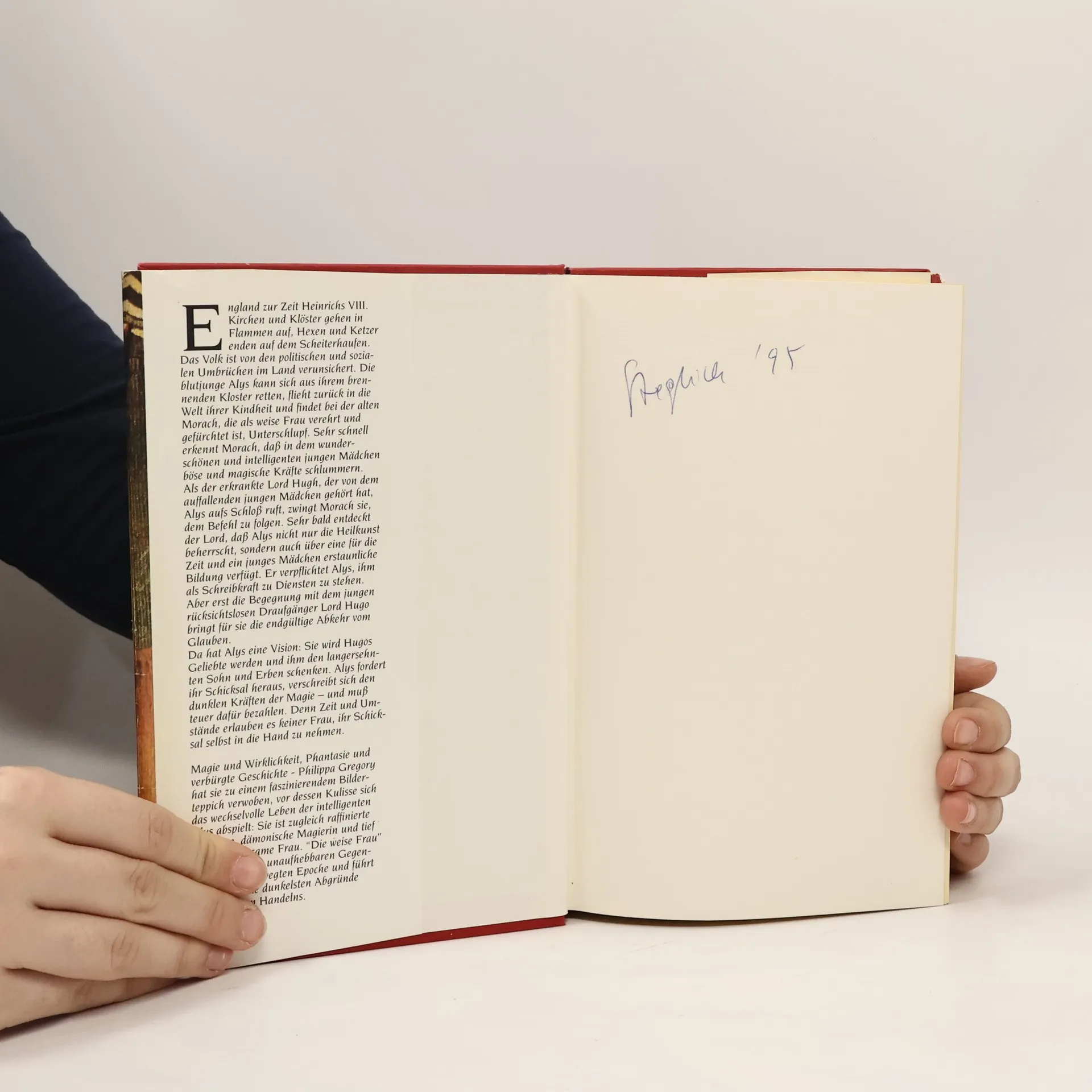 Ein spannender historischer Roman, der zur Zeit Heinrichs VIII. in England spielt: zu jener Zeit, als Kirchen und Klöster in Flammen aufgehen, und Hexen und Ketzer auf den Scheiterhaufen verbrannt werden. "Ich erzähle von einer jungen Nonne", schreibt die Autorin, "der die Flucht aus dem in Flammen stehenden Kloster gelingt und die sich im Schloß des Landesfürsten als Heilerin unentbehrlich macht. Ich bin fasziniert von der Vorstellung einer unabhängigen und intelligenten Frau, die sich dunkle Kräfte zu eigen macht - und das in einer Gesellschaft, die von ihr nur widerstandslose Unterwerfung erwartet."