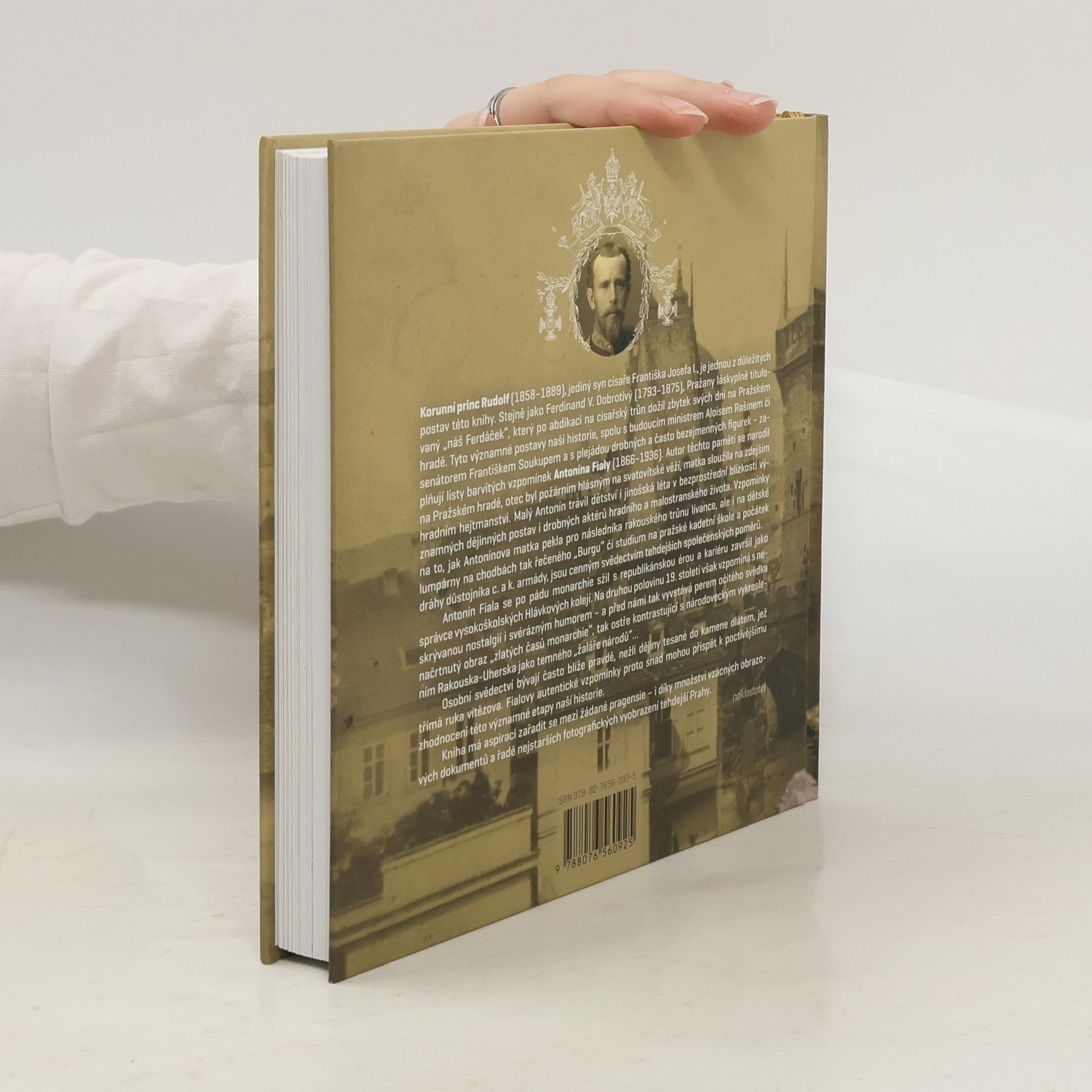 Korunní princ Rudolf (1858–1889), jediný syn císaře Františka Josefa I., je jednou z důležitých postav této knihy. Stejně jako Ferdinand V. Dobrotivý (1793–1875), Pražany láskyplně titulovaný „náš Ferdáček“, který po abdikaci na císařský trůn dožil zbytek svých dní na Pražském hradě. Tyto významné postavy naší historie, spolu s budoucím ministrem Aloisem Rašínem či senátorem Soukupem a s plejádou drobných a často bezejmenných figurek – zaplňují listy barvitých vzpomínek Antonína Fialy (1866–1936). Autor těchto pamětí se narodil na Pražském hradě, otec byl požárním hlásným na Svatovítské věži, matka sloužila na zdejším hradním hejtmanství. Malý Antonín trávil dětství i jinošská léta v bezprostřední blízkosti významných dějinných postav i drobných aktérů hradního a malostranského života. Nejen vzpomínky na to, jak Antonínova matka pekla pro následníka rakouského trůnu lívance, ale i na dětské lumpárny na chodbách tak řečeného „Burgu“ či studium na pražské kadetní škole a počátek dráhy důstojníka c. a k. armády, jsou cenným svědectvím tehdejších společenských poměrů. Antonín Fiala se po pádu monarchie sžil s republikánskou érou a kariéru završil jako správce vysokoškolských Hlávkových kolejí. Na druhou polovinu 19. století však vzpomíná s neskrývanou nostalgií i svérázným humorem – a před námi tak vyvstává perem očitého svědka načrtnutý obraz „zlatých časů monarchie“, tak ostře kontrastující s národoveckým vykreslením Rakouska-Uherska jako temného „žaláře národů“… Osobní svědectví bývají často blíže pravdě, nežli dějiny tesané do kamene dlátem, jež třímá ruka vítězova. Fialovy autentické vzpomínky proto snad mohou přispět k poctivějšímu zhodnocení této významné etapy naší historie. Tato výpravná kniha má aspiraci zařadit se mezi žádané pragensie – i díky množství vzácných obrazových dokumentů a řadě nejstarších fotografických vyobrazení tehdejší Prahy. Publikace vznikla díky badatelskému úsilí, pečlivému přepisu a trpělivé redakční práci badatelky a genealožky Filomeny Jičínské, jejíž rodina o odkaz Antonína Fialy pečuje.