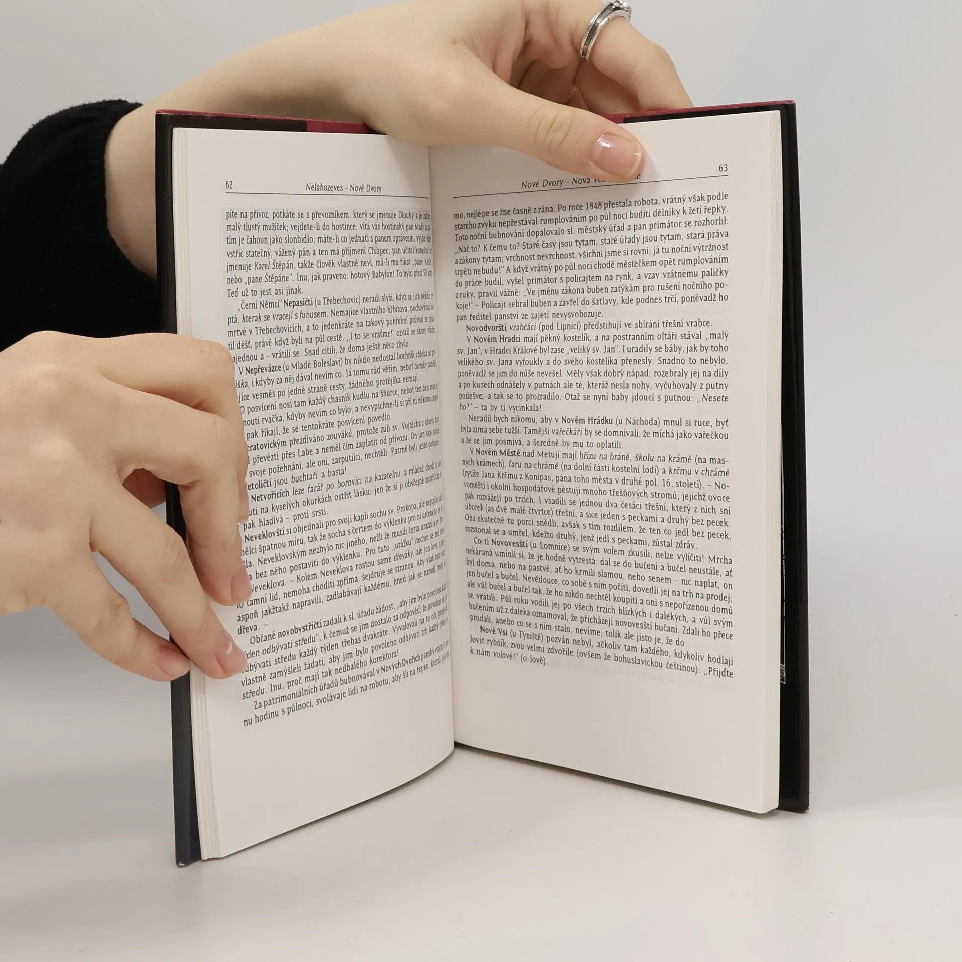 Text knihy prochází v abecedním pořadí města, městečka a dědiny po celých Čechách. Archaickým jazykem promíšeným s lidovou mluvou vypráví, jaká kratochvíle se kde udála, jak kde a komu se nadává, či říká, jakým jazykem mluví zvony.