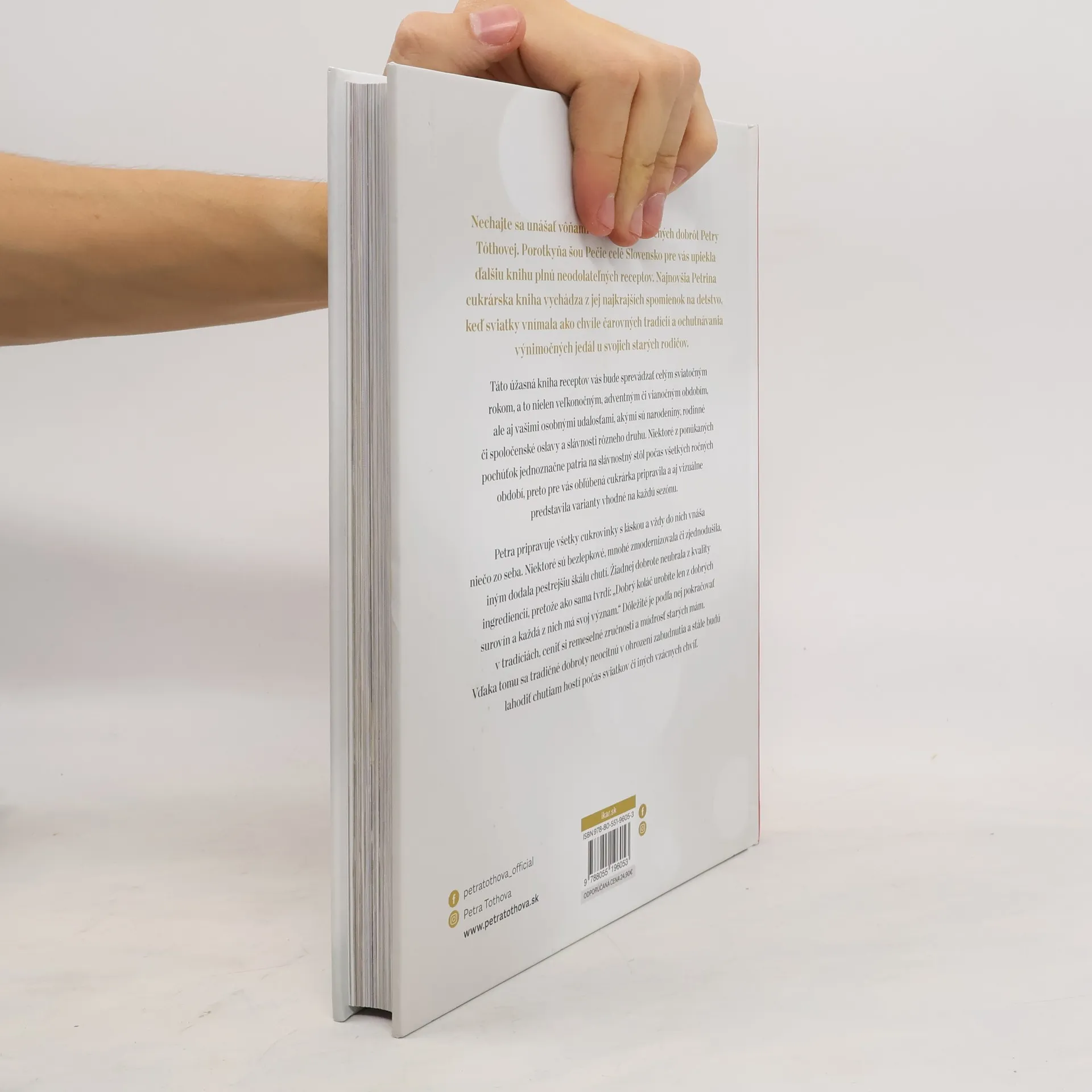 Táto úžasná kniha receptov vás bude sprevádzať celým sviatočným rokom, a to nielen veľkonočným, adventným či vianočným obdobím, ale aj vašimi osobnými udalosťami, akými sú narodeniny, rodinné či spoločenské oslavy a slávnosti rôzneho druhu. Niektoré z ponúkaných pochúťok jednoznačne patria na slávnostný stôl počas všetkýchročných období, preto pre vás obľúbená cukrárka pripravila a aj vizuálne predstavila varianty vhodné na každú sezónu. Petra pripravuje všetky cukrovinky s láskou a vždy do nich vnáša niečo zo seba. Niektoré sú bezlepkové, mnohé zmodernizovala či zjednodušila, iným dodala pestrejšiu škálu chutí. Žiadnej dobrote neubrala z kvality ingrediencií, pretože ako sama tvrdí: „Dobrý koláč urobíte len z dobrých surovín a každá z nich má svoj význam.“ Dôležité je podľa nej pokračovať v tradíciách, ceniť si remeselné zručnosti a múdrosť starých mám. Vďaka tomu sa tradičné dobroty neocitnú v ohrození zabudnutia a stále budú lahodiť chutiam hostí počas sviatkov či iných vzácnych chvíľ.