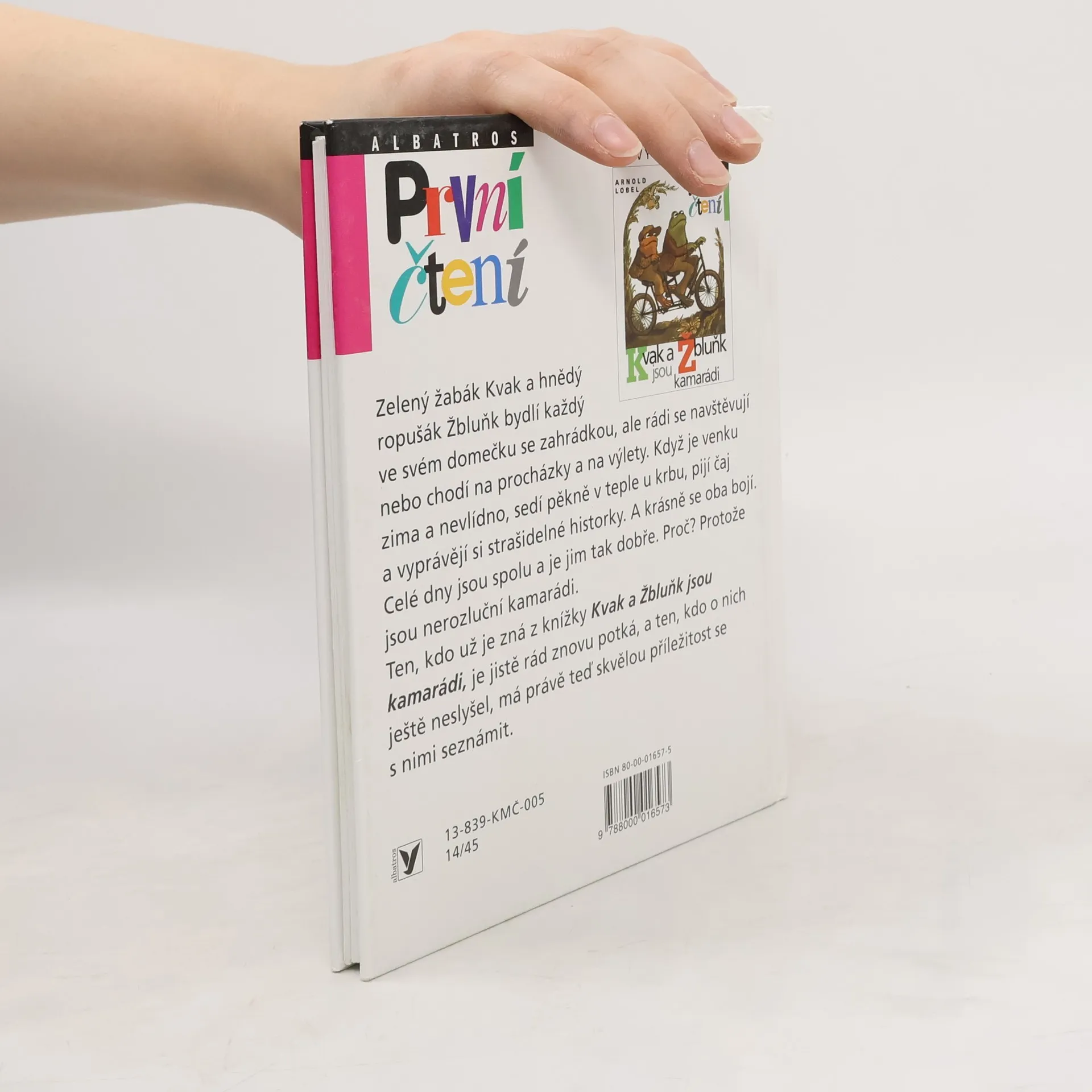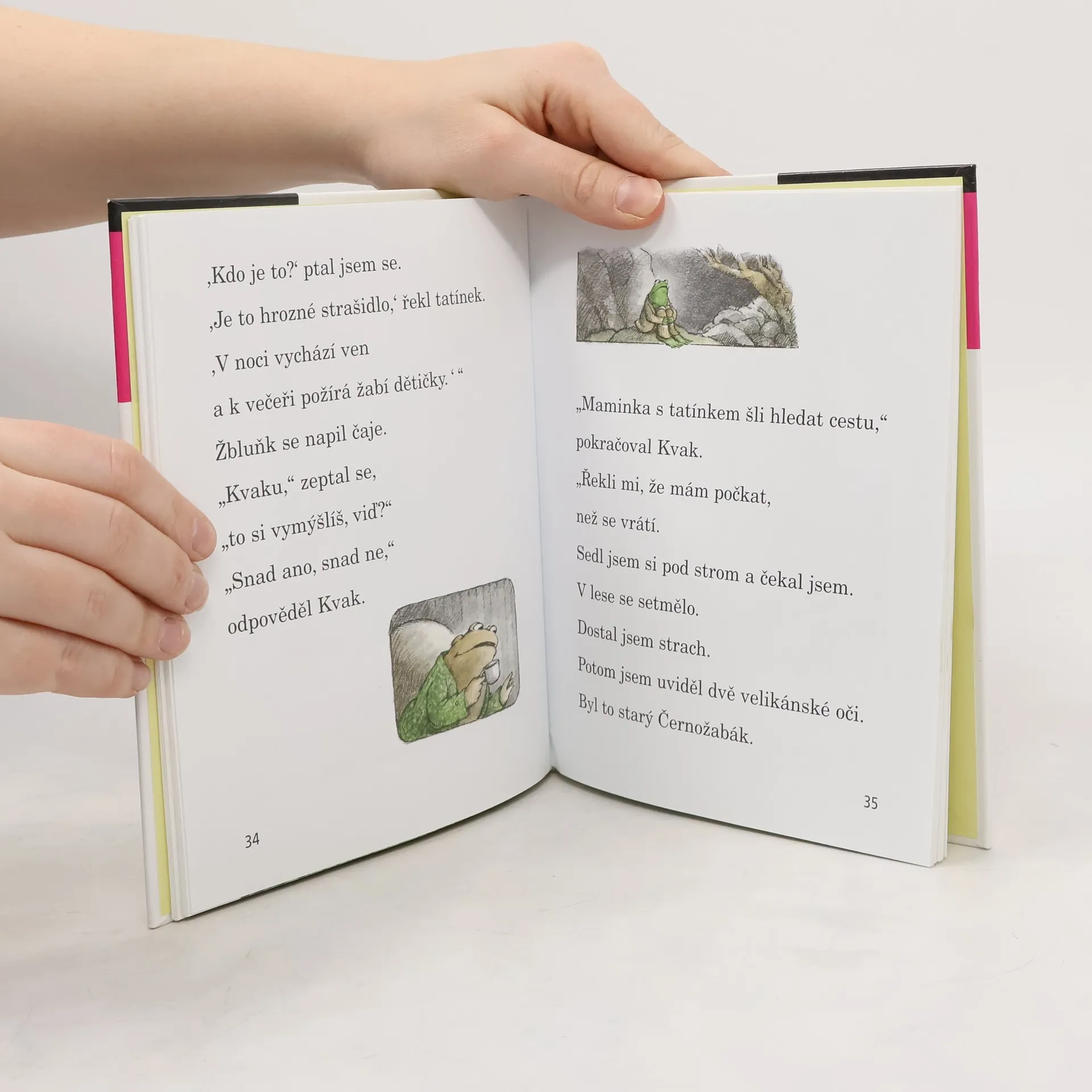 Zelený žabák Kvak a hnědý ropušák Žbluňk bydlí každý ve svém domečku se zahrádkou, ale rádi se navštěvují nebo chodí na procházky a na výlety. Když je venku zima a nevlídno, sedí pěkně v teple u krbu, pijí čaj a vyprávějí si strašidelné historky. A krásně se oba bojí. Celé dny jsou spolu a je jim tak moc dobře. Proč? Protože jsou nerozluční kamarádi. Ten, kdo už je zná z knížek Kvak a Žbluňk jsou kamarádi či Kvak a Žbluňk od jara do Vánoc, je jistě rád znovu potká, a ten, kdo o nich ještě neslyšel, má právě teď příležitost se s nimi seznámit. A protože má knížka velká písmena, snadno ji přelouská každý začínající čtenář. S Kvakem a Žbluňkem se písmenek nikdo bát nemusí!