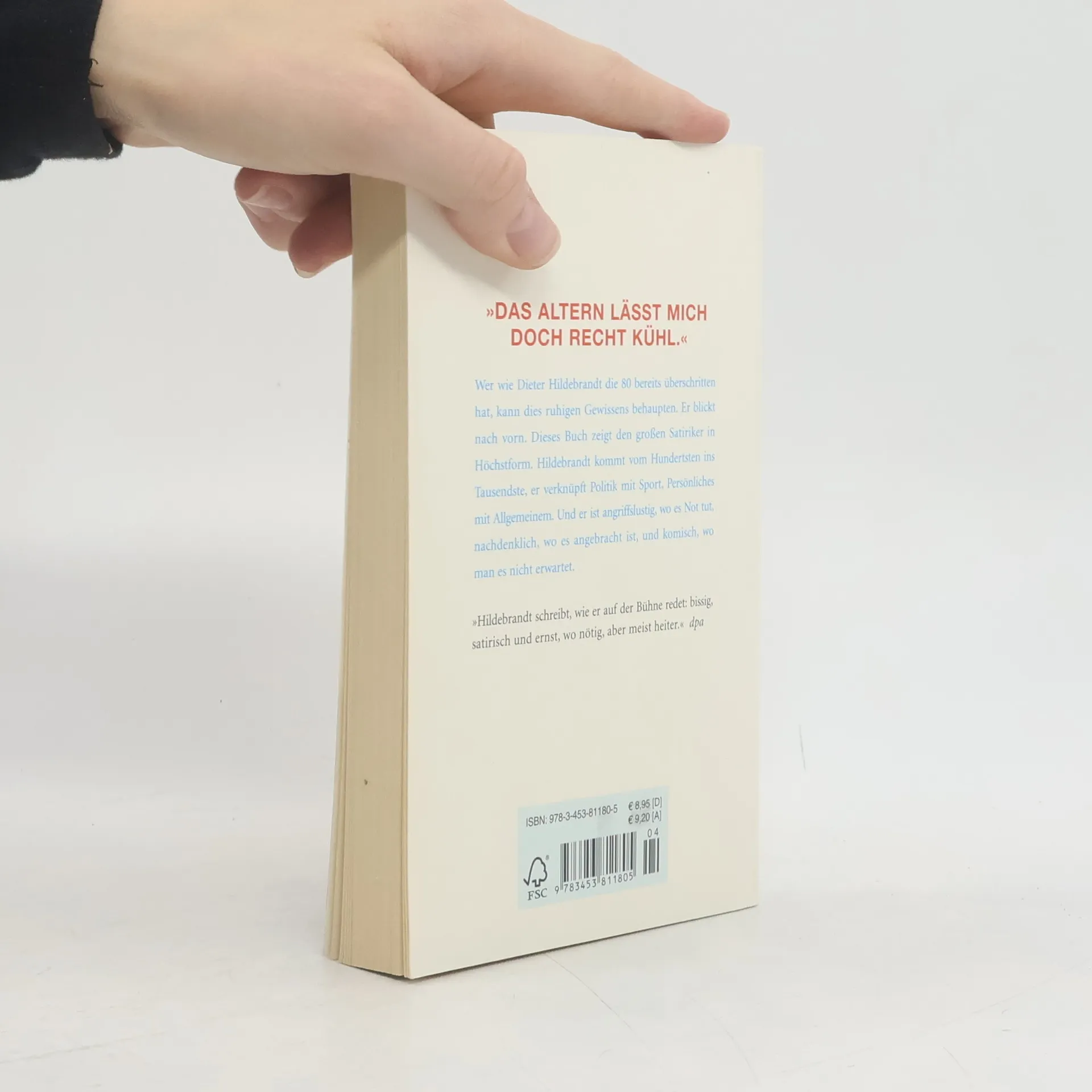 Angriffslustig, nachdenklich und hoch komisch! Das neue Buch zeigt den großen Satiriker in Höchstform. Hildebrandt kommt vom Hundertsten ins Tausendste, er verknüpft die Politik mit der Kunst, das Persönliche mit dem Nationalen. Er ist angriffslustig, wo es Not tut, nachdenklich, wo es angebracht ist, und komisch, wenn es ihm gefällt. Das wird vielen gefallen. Dieter Hildebrandt nannte sein letztes Buch prophetisch AUSGEBUCHT. Wie wahr! Wo immer er aus diesem Buch las, die Säle waren ausgebucht. Der Erfolg wird sich wiederholen. Es gibt schließlich Wichtiges zu kommentieren und zu beschreiben. Es wird ihm etwas einfallen zu Gammelfleisch und Gesundheitsreform, zu Papst Benedikt und Bär Bruno, zu Bundeswehreinsätzen und Transrapid-Rangeleien und natürlich zum Fußball – WM hinter uns, EM vor uns. Mit einem Wort: ein echter Hildebrandt! Neben aktuellen Texten auch ein „Best of“ aus fünf Jahrzehnten.