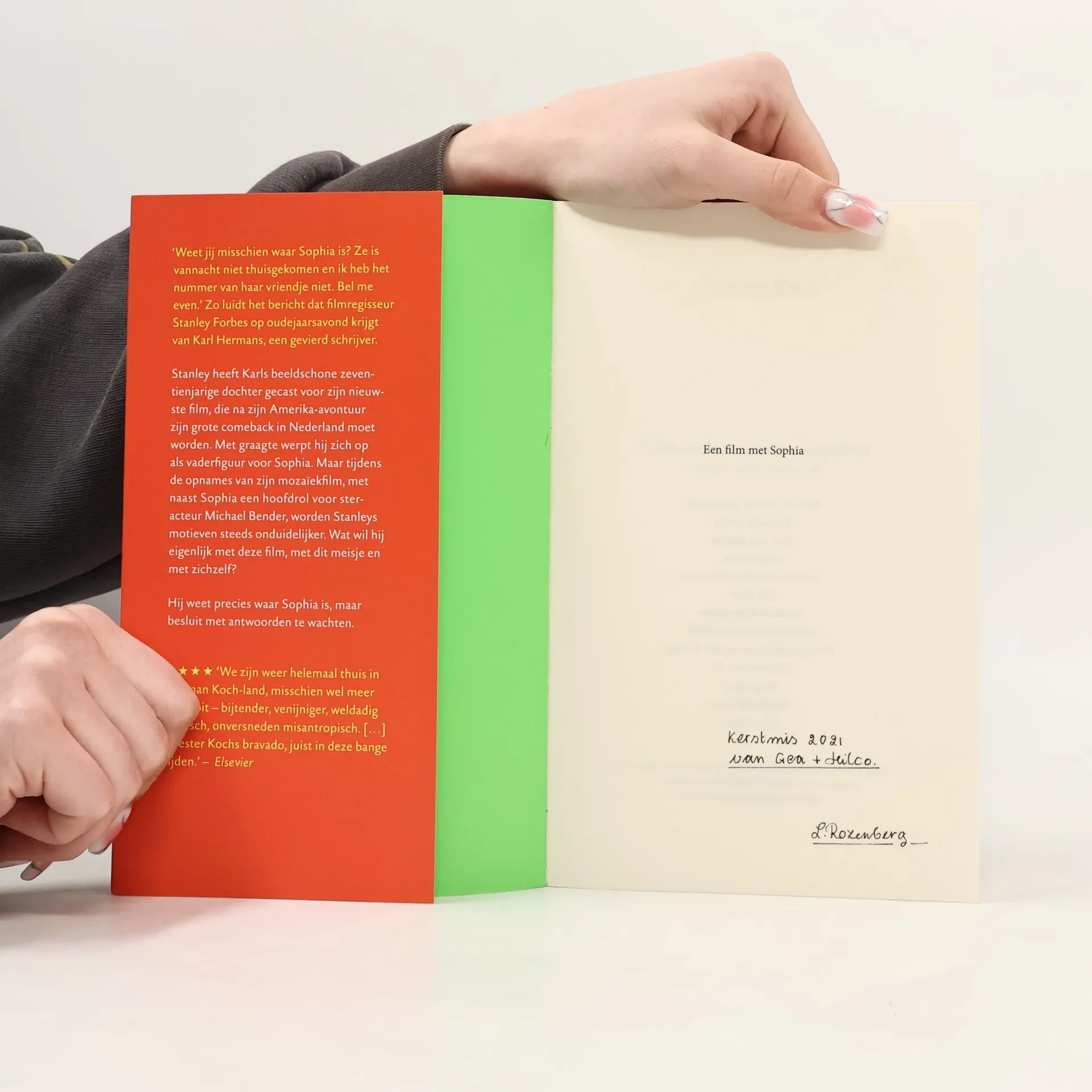 Een film met Sophia is de nieuwe roman van Herman Koch! Een spannende roman over de laatste film van een beroemde filmmaker en zijn fascinatie voor de jonge hoofdpersoon.‘Weet jij misschien waar Sophia is? Ze is vannacht niet thuisgekomen en ik heb het nummer van haar vriendje niet. Bel me even.’ Zo luidt het bericht dat filmregisseur Stanley Forbes op oudejaarsavond krijgt van Karl Hermans, een gevierd schrijver. Stanley heeft Karls beeldschone zeventienjarige dochter gecast voor zijn nieuwste film, die na zijn Amerika-avontuur zijn grote comeback in Nederland moet worden. Met graagte werpt hij zich op als vaderfiguur voor Sophia. Maar tijdens de opnames van zijn mozaïekfilm, met naast Sophia een hoofdrol voor steracteur Michael Bender, worden Stanleys motieven steeds onduidelijker. Wat wil hij eigenlijk, met deze film, met dit meisje en met zichzelf? Hij weet precies waar Sophia is, maar besluit met antwoorden te wachten.Een film met Sophia van Herman Koch is een spannende roman over de vaderlijke liefde voor een jonge actrice, de verdorven filmwereld en de kunst van het thuisblijven.