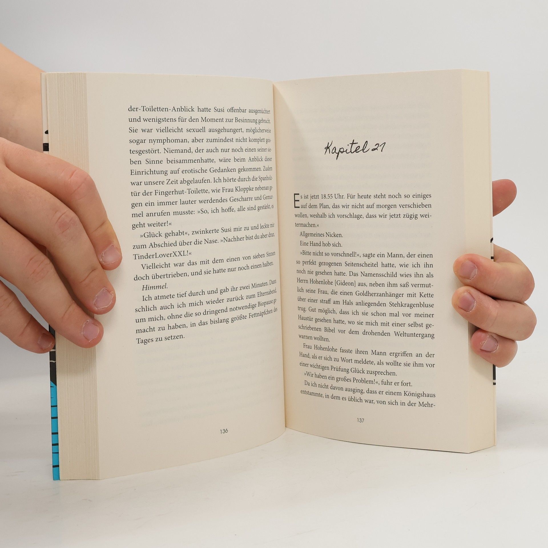 Stell dir vor ... … du musst eine halbe Ewigkeit auf einem Elternabend verbringen. Dabei hast du gar kein Kind! Ein lebenskluger und hinreißend komischer Roman im Stil von Sebastian Fitzeks Nr.1-Bestseller »Der erste letzte Tag« Sascha Nebel hat sich zur falschen Zeit am falschen Ort das falsche Auto für einen Diebstahl ausgesucht. Kaum, dass er hinter dem Steuer eines Geländewagens Platz genommen hat, zieht eine Horde demonstrierender Klimaaktivisten durch die Straße. Allen voran eine junge Frau, die den SUV mit einer Baseballkeule demoliert. Als die Polizei auf der Bildfläche erscheint, ergreifen Sascha und die Unbekannte die Flucht und platzen in den Elternabend einer 5. Klasse. Um die Nacht nicht in Polizeigewahrsam zu verbringen, bleibt ihnen keine andere Wahl: Sie müssen in die Rolle von Christin und Lutz Schmolke schlüpfen, den Eltern des 11jährigen Hector, die bislang jede Schulveranstaltung versäumten. Zwei wildfremde Menschen, zwischen denen kaum größeres Streitpotential herrschen könnte, geben sich als Vater und Mutter eines ihnen völlig unbekannten Kindes aus. Dabei ist die Tatsache, dass Hector der größte Rüpel der Schule ist, sehr schnell ihr kleinstes Problem …