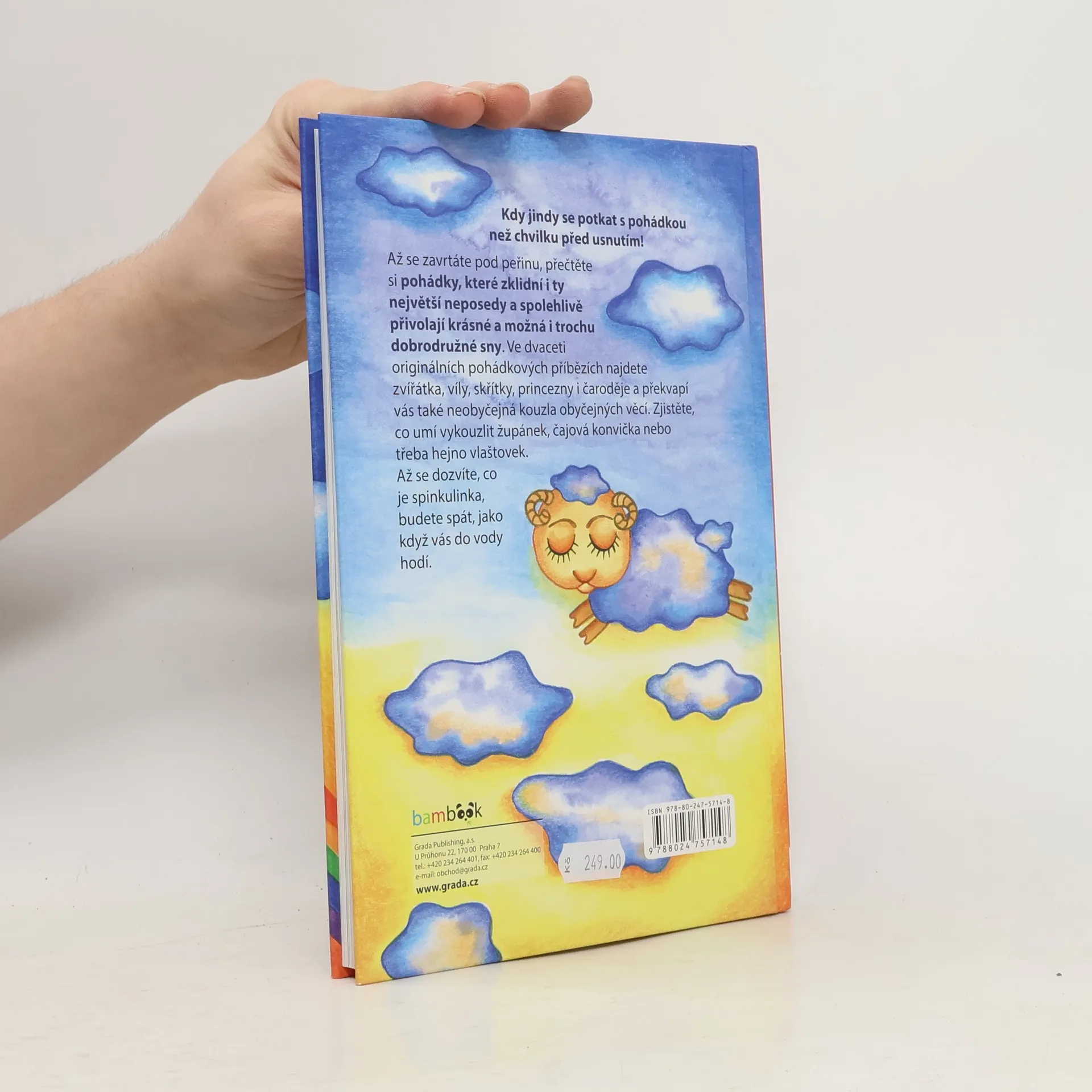 Komu by se chtělo do postýlky, když svět je plný zajímavých věcí a zážitků? Spát se ale musí a usínání může být také báječné dobrodružství. Kdy jindy se potkat s pohádkou než chvilku před usnutím? Než se zavrtáte pod peřinu, přečtěte si zbrusu nové pohádky, které zklidní i ty největší neposedy a spolehlivě přivolají krásné a možná i trochu dobrodružné sny. Ve dvaceti originálních pohádkových příbězích najdete zvířátka, víly, skřítky, princezny i čaroděje a překvapí vás také neobyčejná kouzla obyčejných věcí. Zjistěte, co umí vykouzlit župánek, čajová konvička nebo třeba hejno vlaštovek. Až se dozvíte, co je spinkulinka, budete spát, jako když vás do vody hodí. Další z řady moderních pohádek oblíbené autorky Zuzany Pospíšilové tentokrát provázejí půvabné ilustrace Veroniky Kubáčové.