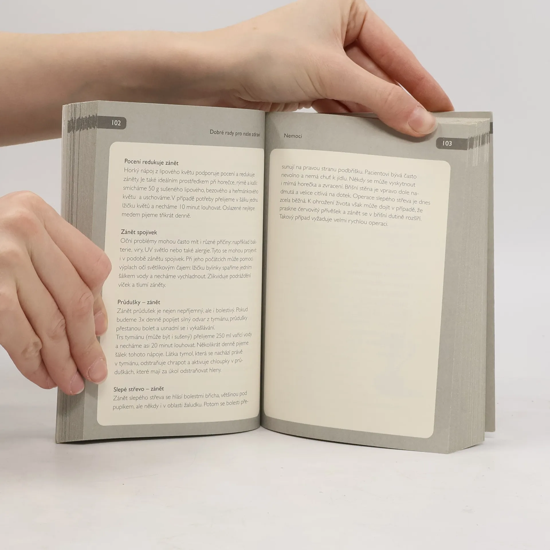 Jak si poradit s bolestí hlavy, krku, uší, kloubů, zubů, žaludku a zad. Co pomůže při bodnutí hmyzem. Jak vytáhnout klíště a správně ošetřit ránu. Co dělat při ledvinové kolice, krvácení z nosu, při pohmožděninách a podvrknutí. Co zabere na puchýře na nohou... Přehledný rádce, jak řešit zdravotní problémy přírodními prostředky. Rady, odpovědi na zvídavé otázky a mnoho dalších vynikajících tipů v péči o tělo a duši.