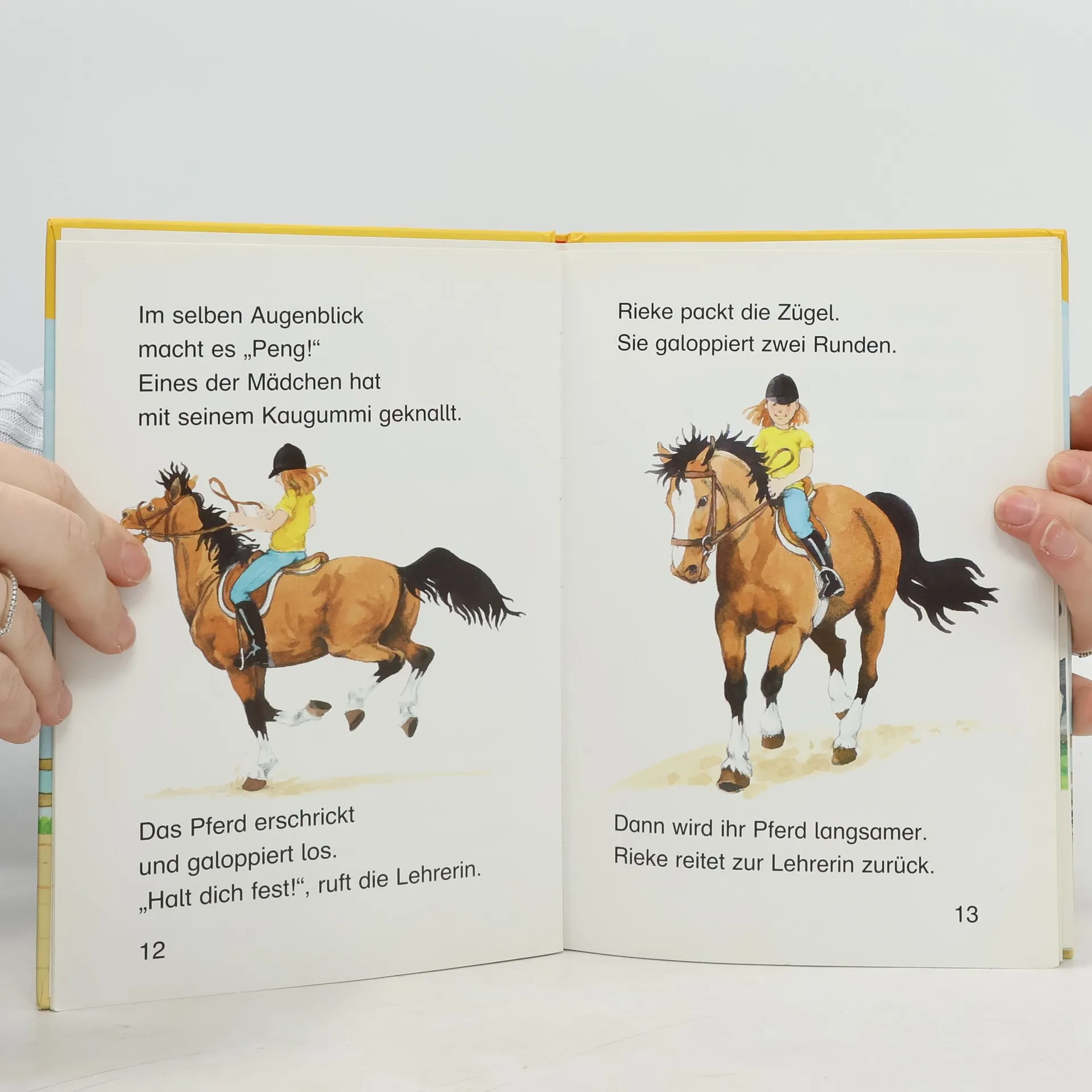 Ihre erste Reitstunde hat sich Rieke wirklich anders vorgestellt - sie darf nicht mal galoppieren! Und dann diese drei Mädchen, die die ganze Zeit kichern! Am Ende der Stunde erleben alle eine Überraschung