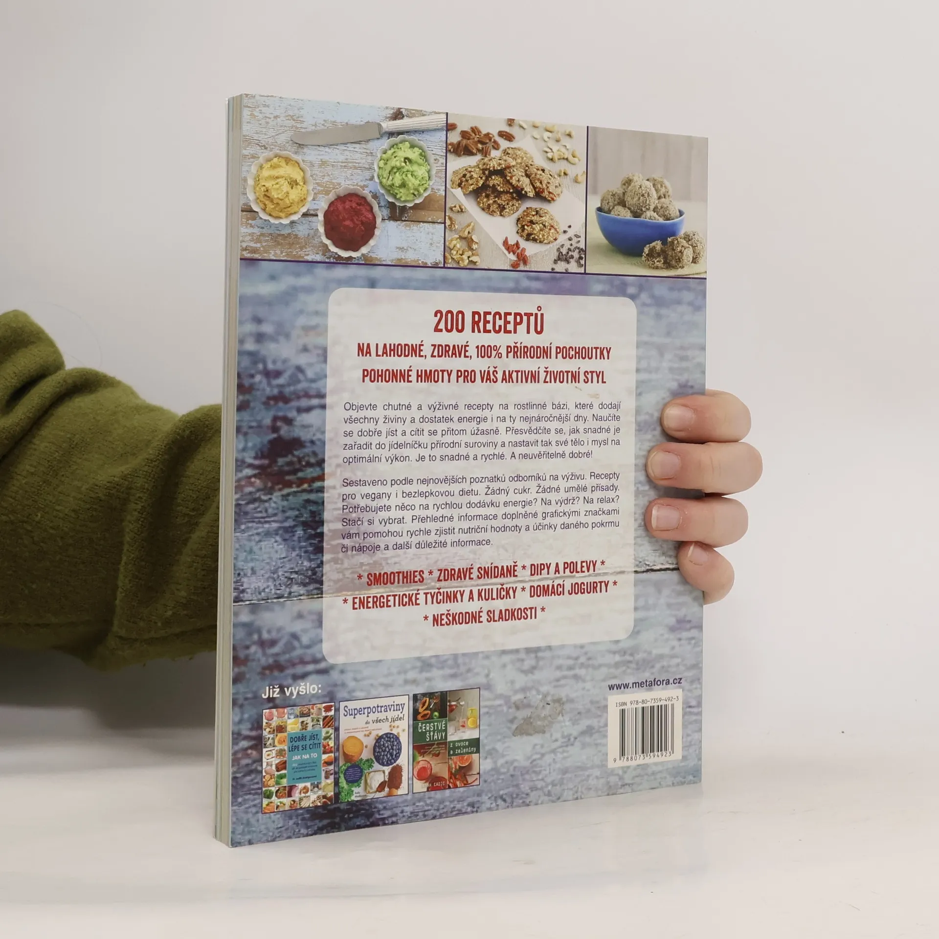 200 receptů na lahodné, zdravé, stoprocentně přírodní pochoutky - pohonné hmoty pro váš aktivní životní styl 100% přírodní suroviny * smoothies * zdravé snídaně * dipy a polevy * energetické tyčinky a kuličky * domácí jogurty * neškodné sladkosti * recepty nejen pro vegetariány a vegany Objevte chutné a výživné recepty na rostlinné bázi, které dodají všechny živiny a dostatek energie i na ty nejnáročnější dny. Naučíte se dobře jíst a cítit se přitom úžasně. Přesvědčíte se, jak snadné je zařadit do jídelníčku přírodní suroviny a nastavit tak své tělo i mysl na optimální výkon. Je to snadné a rychlé. A neuvěřitelně dobré! Sestaveno podle nejnovějších poznatků odborníků na výživu. Recepty pro vegany i bezlepkovou dietu. Žádný cukr. Žádné umělé přísady. Potřebujete něco na rychlou dodávku energie? Na výdrž? Na relax? Stačí si vybrat. Přehledné informace doplněné grafickými značkami vám pomohou rychle zjistit nutriční hodnoty, účinky daného pokrmu či nápoje, ale i další užitečné informace.