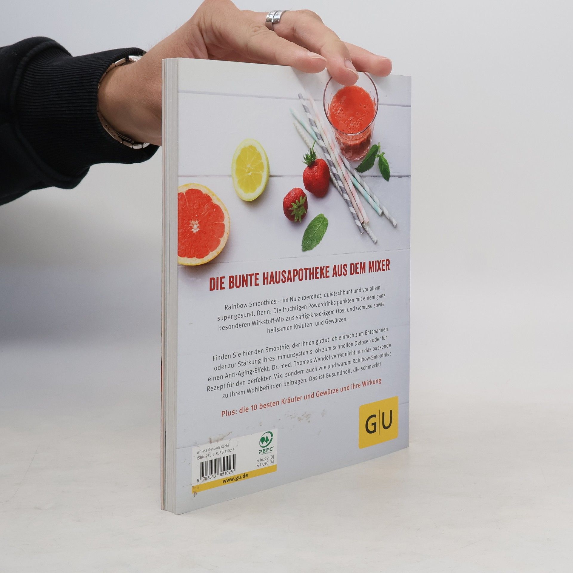 Fünf Portionen Obst und Gemüse pro Tag? Wer schafft das schon? Frisches Obst und Gemüse sind entscheidend für unsere Gesundheit, doch wie lässt sich das unkompliziert in den Alltag integrieren? Die Antwort sind Smoothies! Mit über 60 bunten Rezepten, die die natürliche Heilkraft von Kräutern, Gewürzen und Superfoods wie Acai oder Aloe vera nutzen, wird die Ernährungsumstellung zum Genuss. Ob als morgendlicher Kick-Start, Detox Smoothie to go oder entspannender Abend-Snack – diese Smoothies sind nicht nur gesund, sondern auch lecker und abwechslungsreich. Die Rezepte reichen von leuchtend gelben Bananen- bis hin zu grünen Spinat-Smoothies und bieten eine einfache Möglichkeit, Gesundheit und Wohlbefinden zu fördern. Die natürlichen Farbstoffe aus Obst und Gemüse sind wertvolle sekundäre Pflanzenstoffe, die gezielt unser Wohlbefinden stärken. Die Smoothie-Rezepte sind nach Themen gegliedert: Anti-Aging, Detox, Stoffwechselaktivierung, Entspannung und Immunsystemstärkung. Mit einem leistungsfähigen Mixer lassen sich diese Vitalstoffe mühelos zubereiten. Fünf Rainbow Smoothies am Tag sind das neue Erfolgsrezept für Beauty, Fitness und Power aus der Natur – einfach, lecker und gesund! Dr. Thomas Wendel, ein auf gesunde Lebensführung spezialisierter Arzt, bietet wertvolle Tipps zur heilsamen Wirkung von Kräutern und zeigt, wie eine sanfte Ernährungsumstellung gelingt.
