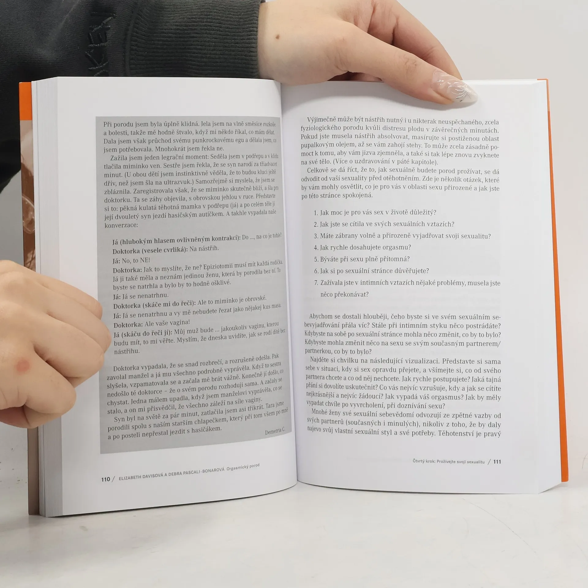 Kniha, která vám může otevřít oči a úplně změnit přístup k rození a možná i k vlastnímu životu. Odbornice na slovo vzaté, porodní asistentka a autorka učebnice pro porodní asistentky Elizabeth Davisová a zkušená dula a lektorka Debra Pascali-Bonarová, ukazují, že porod je možné prožít jako příjemnou až slastnou a extatickou, zásadně posilující událost, která ženě dodá sílu a odhodlání nejen pro následující roky mateřství. Orgasmický porod je přehledným průvodcem těhotenstvím a porodem. Přináší podrobný návod, jak se na porod, který je součástí sexuálního života ženy, připravit. Klade důraz na informovanost, zdravou životosprávu, sexualitu, odbourání stresu a vyrovnání se s traumaty. Kniha ženám (i jejich partnerům) dodá sebevědomí, potřebné informace podložené vědeckými výzkumy i životními zkušenostmi autorek a mnoha rodiček. Čtenářky podpoří, aby nejen své porody, ale i svůj život vzaly do svých rukou. Teoretickou část doprovázejí inspirativní porodní příběhy.