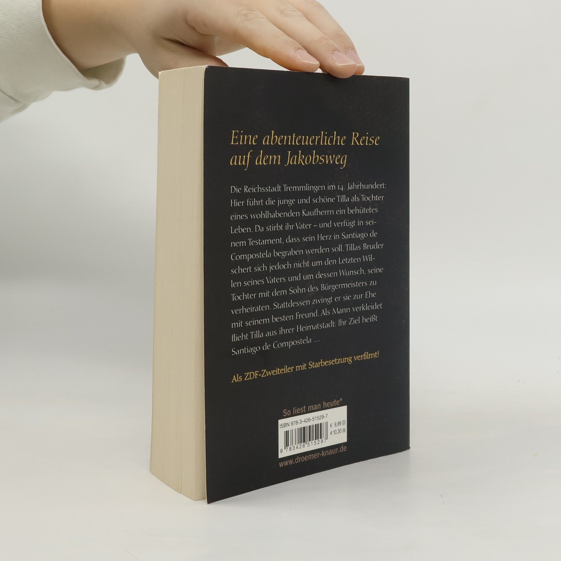 Die Reichsstadt Tremmlingen im 14.Jahrhundert: Hier führt die junge und schöne Tilla als Tochter eines wohlhabenden Kaufherrn ein behütetes Leben. Da stirbt ihr Vater - und verfügt in seinem Testament, dass sein Herz in Santiago de Compostela begraben werden soll. Tillas Bruder schert sich jedoch nicht um den Letzten Willen seines Vaters und um dessen Wunsch, seine Tochter mit dem Sohn des Bürgermeisters zu verheiraten. Stattdessen zwingt er sie zur Ehe mit seinem besten Freund. Tilla hat nur eine Chance: Sie muss fliehen! Als Mann verkleidet verlässt sie ihre Heimatstadt - im Gepäck das Herz ihres Vaters. Ihr Ziel heißt Santiago de Compostela ...