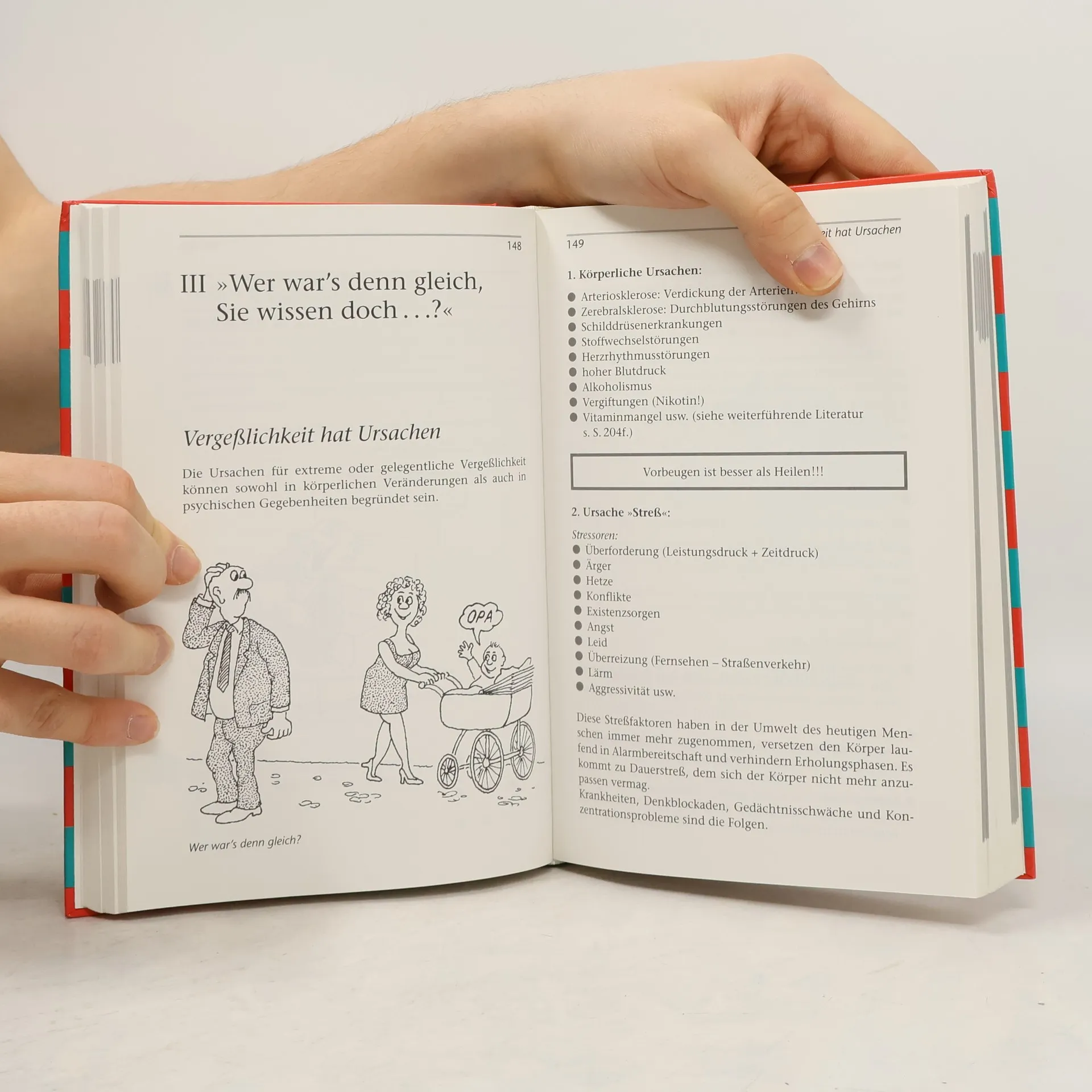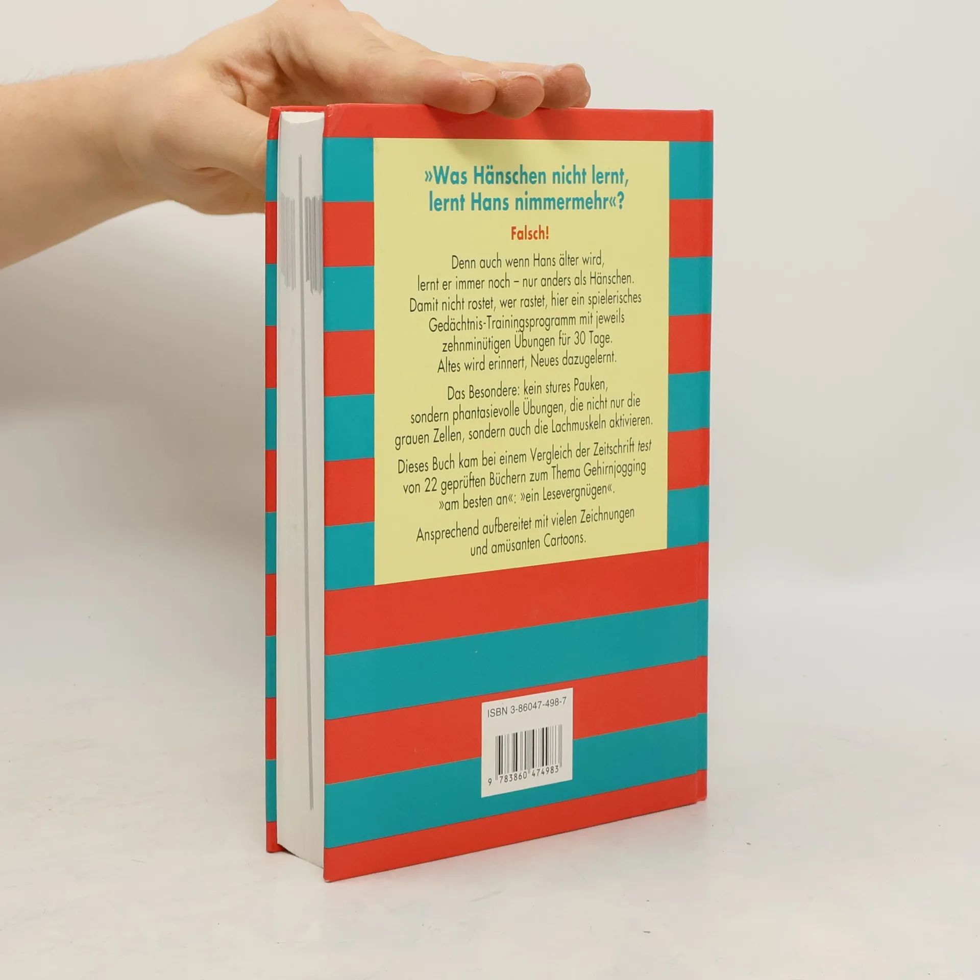 Stiftung Warentest: sehr gut! Humboldt-Bestseller, endlich wieder lieferbar! Dieses Buch bietet ein spielerisches Gedächtnis-Trainingsprogramm mit jeweils zehnminütigen Übungen für 30 Tage. Denn: Wer rastet, der rostet! Das Besondere: kein stures Pauken, sondern fantasievolle Übungen, die nicht nur die grauen Zellen, sondern auch die Lachmuskulatur aktivieren. So urteilt die Zeitschrift „test“ über dieses Buch: „Der Schwerpunkt: ein unterhaltsames Trainingsprogramm für Gedächtnis, Wissen, Wahrnehmung, Kreativität. Für Jugendliche und Erwachsene, für ältere und alte Menschen geeignet, auch für in ihrer Wahrnehmung beeinträchtigte. Beurteilung: Sehr abwechslungsreich, schön aufgemacht und besonders gut gegliedertes Buch mit einem 30-Tage-Training. Berücksichtigt werden auch gymnastische Übungen, Ernährungstipps, Entspannung und Atmung; sehr gut umsetzbare Alltagsstrategien – ein Lesevergnügen, kam bei den Testenden mit Abstand am besten an!“ Bestes Buch von 22 getesteten Büchern zum Thema!