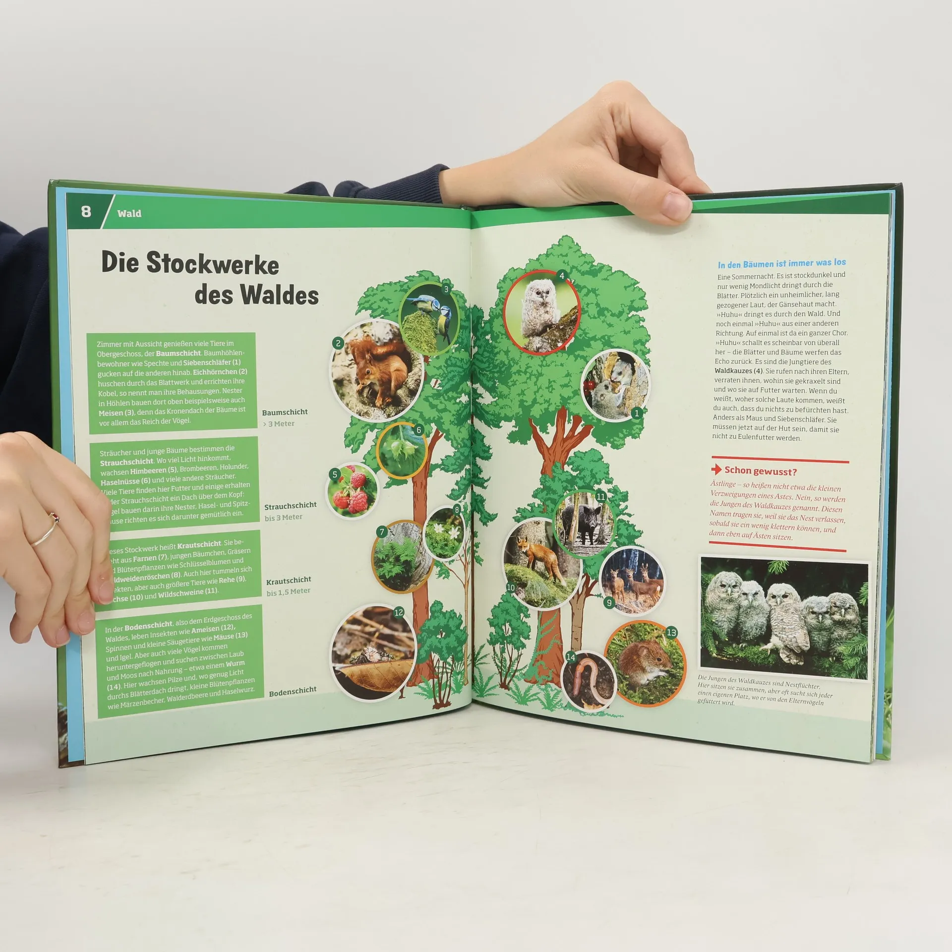 Ein Wald ist ein wahrer Alleskönner. Er bietet nicht nur Tieren und Pflanzen ein Zuhause, er tut auch viel für uns Menschen. Eine 100 Jahre alte Buche produziert jährlich 4.600 Kilogramm Sauerstoff. Davon kann ein Erwachsener 13 Jahre lang atmen. Wunder der Natur - WAS IST WAS erkundet Wälder, Wiesen und Hecken, Gewässer und Gebirge. Elbe, alles im Fluss? Voll das Leben am See? Platt im Watt? Es werden die deutschen Nationalparks vorgestellt, die Stockwerke des Waldes, Heckenfrüchte und Wiesenblumen, Vögel und Insekten, wildes Leben in der Stadt.
