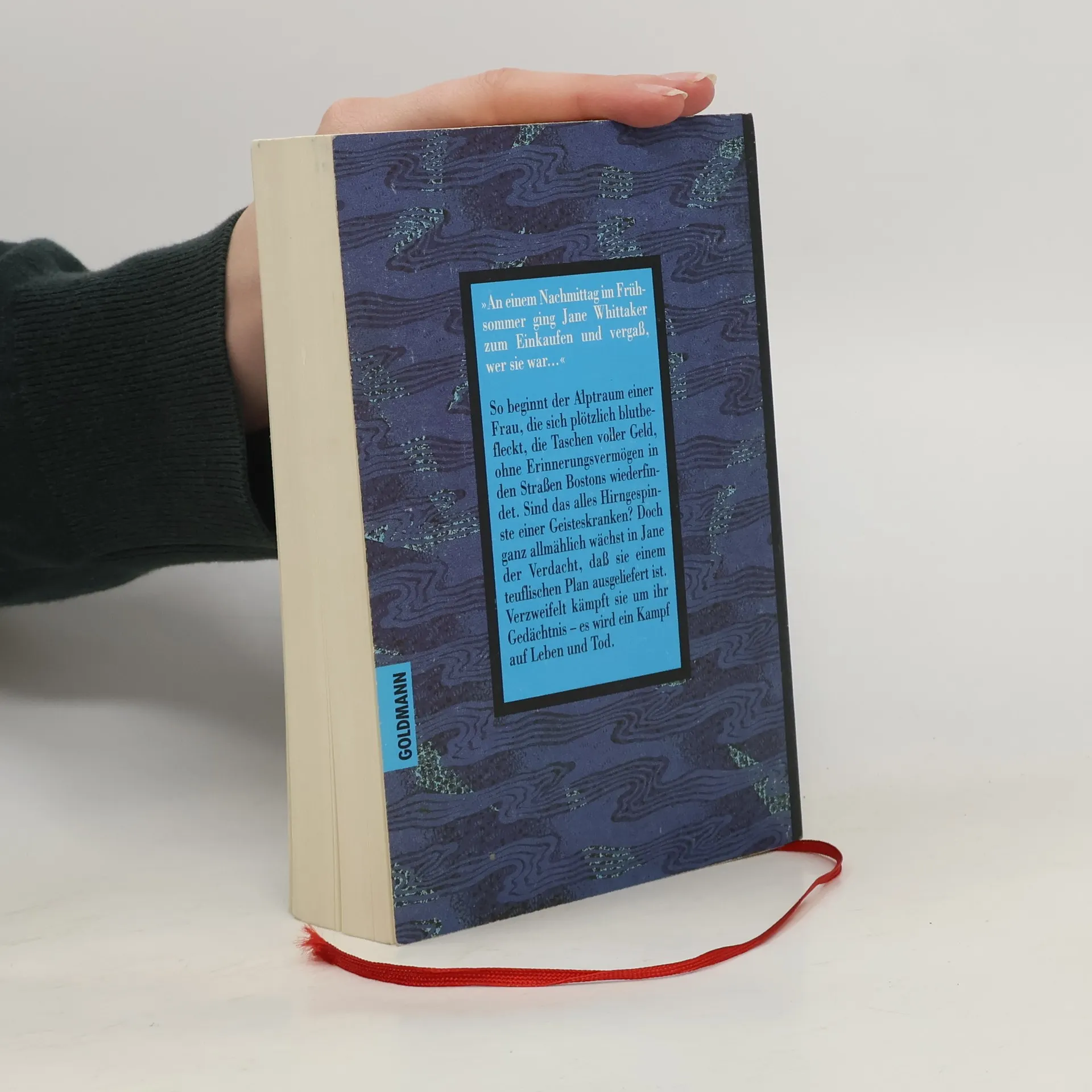"An einem Nachmittag im Frühsommer ging Jane Whittaker zum Einkaufen und vergaß, wer sie war..." So beginnt der Albtraum einer Frau, als sie sich plötzlich blutbefleckt, die Taschen voller Geld und ohne Erinnerungsvermögen auf den Straßen Bostons wiederfindet. Sind das alles Hirngespinste einer Geisteskranken? Doch ganz allmählich wächst in Jane der Verdacht, daß sie einem teuflischen Plan ausgeliefert ist. Verzweifelt kämpft Jane von nun an um ihr Gedächtnis – es wird ein Kampf auf Leben und Tod.