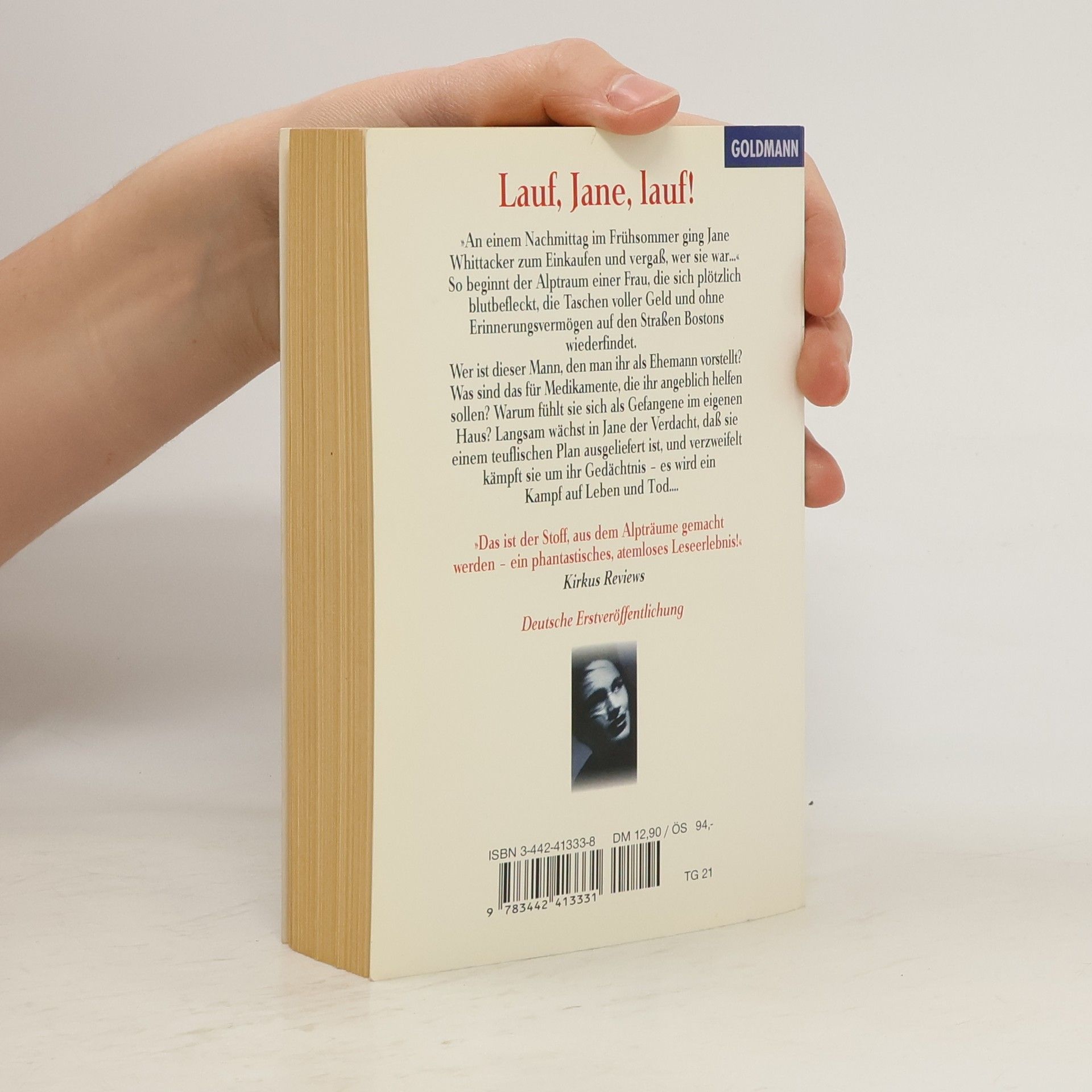 „An einem Nachmittag im Frühsommer ging Jane Whittaker zum Einkaufen und vergaß, wer sie war…“ So beginnt der Alptraum einer Frau, die sich plötzlich blutbefleckt, die Taschen voller Geld und ohne Erinnerungsvermögen auf den Straßen Bostons wiederfindet. Wer ist dieser Mann, den man ihr als ihren Ehemann vorstellt? Was sind das für Medikamente, die ihr angeblich helfen sollen? Und warum fühlt sie sich als Gefangene im eigenen Haus? Verzweifelt kämpft Jane von nun an um ihr Gedächtnis – es wird ein Kampf auf Leben und Tod …