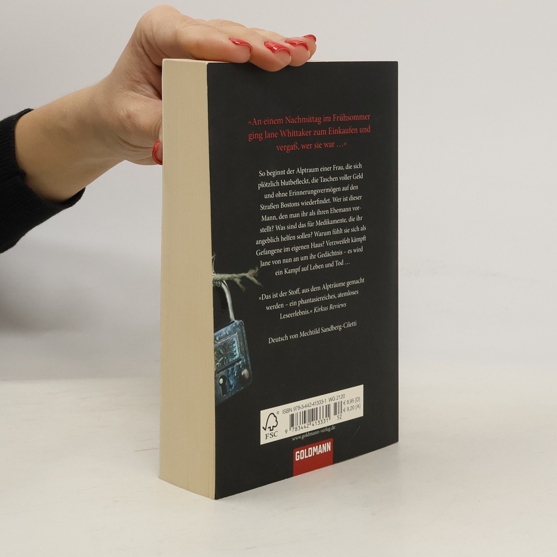 „An einem Nachmittag im Frühsommer ging Jane Whittaker zum Einkaufen und vergaß, wer sie war…“ So beginnt der Alptraum einer Frau, die sich plötzlich blutbefleckt, die Taschen voller Geld und ohne Erinnerungsvermögen auf den Straßen Bostons wiederfindet. Wer ist dieser Mann, den man ihr als ihren Ehemann vorstellt? Was sind das für Medikamente, die ihr angeblich helfen sollen? Und warum fühlt sie sich als Gefangene im eigenen Haus? Verzweifelt kämpft Jane von nun an um ihr Gedächtnis – es wird ein Kampf auf Leben und Tod …