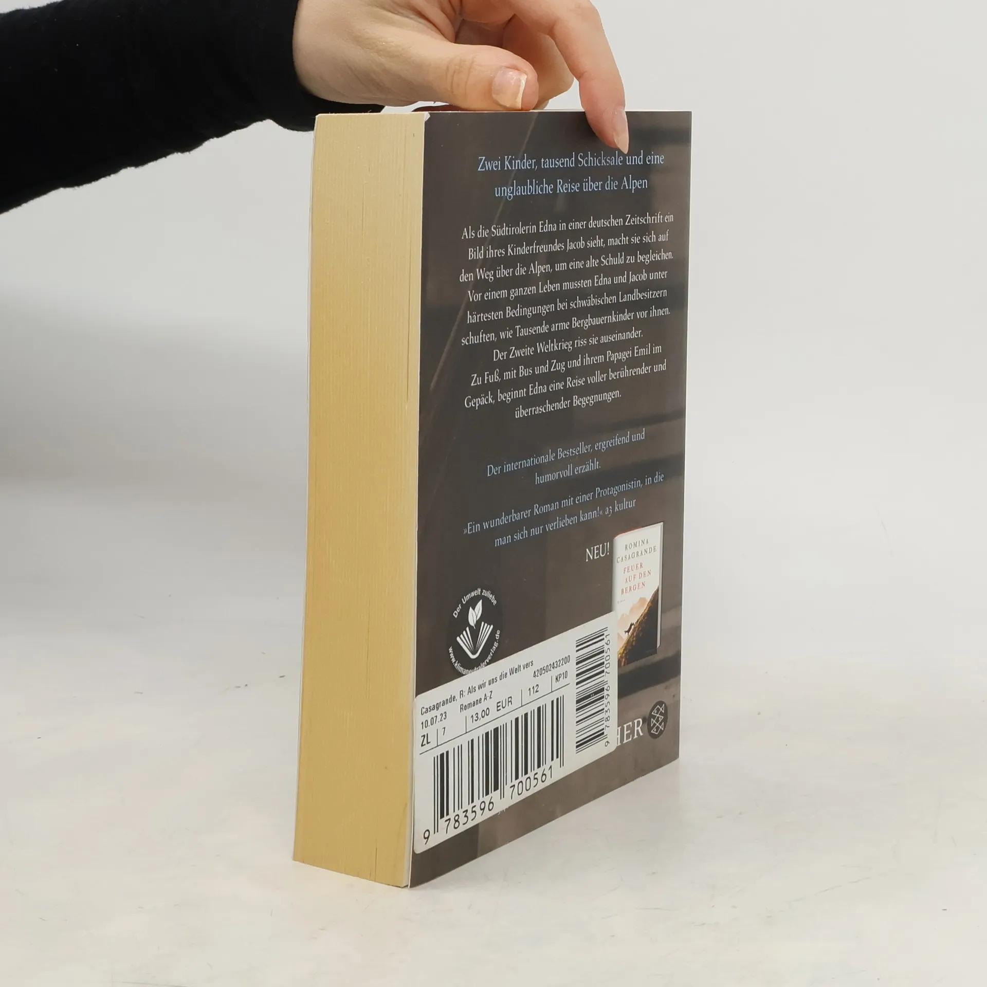 Zwei Kinder, tausend Schicksale und eine unglaubliche Reise über die Alpen zwischen Italien und Deutschland. Der internationale Bestseller von Romina Casagrande, so ergreifend wie humorvoll erzählt. »Ein wunderbarer Roman mit einer Protagonistin, in die man sich nur verlieben kann.« a3 kultur Als die Südtirolerin Edna in einer deutschen Zeitschrift ein Bild ihres Kinderfreundes Jacob sieht, macht sie sich auf den Weg über die Berge, um eine alte Schuld zu begleichen. Vor einem ganzen Leben mussten Edna und Jacob unter härtesten Bedingungen bei schwäbischen Landbesitzern schuften, wie Tausende arme Bergbauernkinder vor ihnen. Der Zweite Weltkrieg riss sie auseinander. Zu Fuß, mit Bus und Zug und ihrem Papagei Emil im Gepäck, beginnt Edna unbeirrt eine Reise voller berührender und überraschender Begegnungen. »Bewegend schreibt Romina Casagrande über die Geschichte der ›kleinen Sklaven‹ und auch über das Reisen als Bild für das Leben an sich.« Corriere della Sera