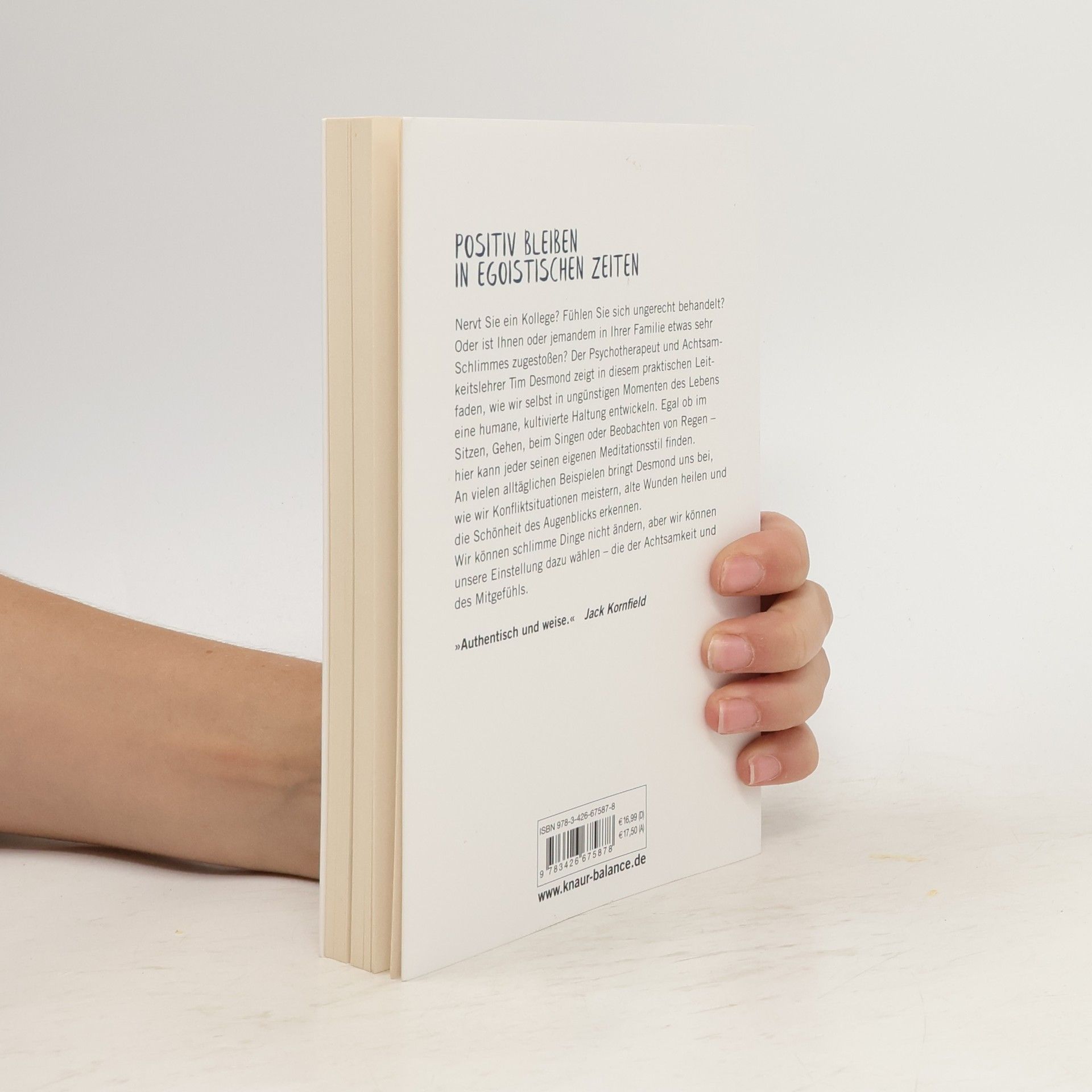 Ein Leitfaden für das Überleben in egoistischen Zeiten. Der Psychotherapeut und Achtsamkeitslehrer Tim Desmond zeigt, wie wir auch in schwierigen Lebensmomenten eine humane Haltung bewahren können. Ob es um nervige Kollegen, Ungerechtigkeiten oder persönliche Tragödien geht – dieser Leitfaden unterstützt beim Umgang mit herausfordernden Emotionen und Konflikten und fördert mehr Leichtigkeit und Harmonie in Beziehungen. „Shit happens“ richtet sich an Nicht-Meditierer und alle, die Achtsamkeit und Selbstmitgefühl entwickeln möchten, ohne täglich meditieren zu müssen. Tim Desmond, der Stressreduktions-Programme für Unternehmen wie Google entwickelt hat, präsentiert sechs Methoden, um achtsam zu sein, ohne zu meditieren. Die leicht verständlichen Anleitungen beziehen sich auf alltägliche Aktivitäten wie Spazierengehen, Duschen oder Gemüseschneiden. Desmond ermutigt dazu, die Perspektive zu wechseln und zeigt anhand alltäglicher Beispiele, wie wir die Schönheit des Moments erkennen, Glück von Unglück unterscheiden und Konflikte meistern können. Obwohl wir schlimme Dinge nicht ändern können, bleibt uns die Wahl, unsere Einstellung zu ihnen zu gestalten – hin zu Achtsamkeit und Mitgefühl.