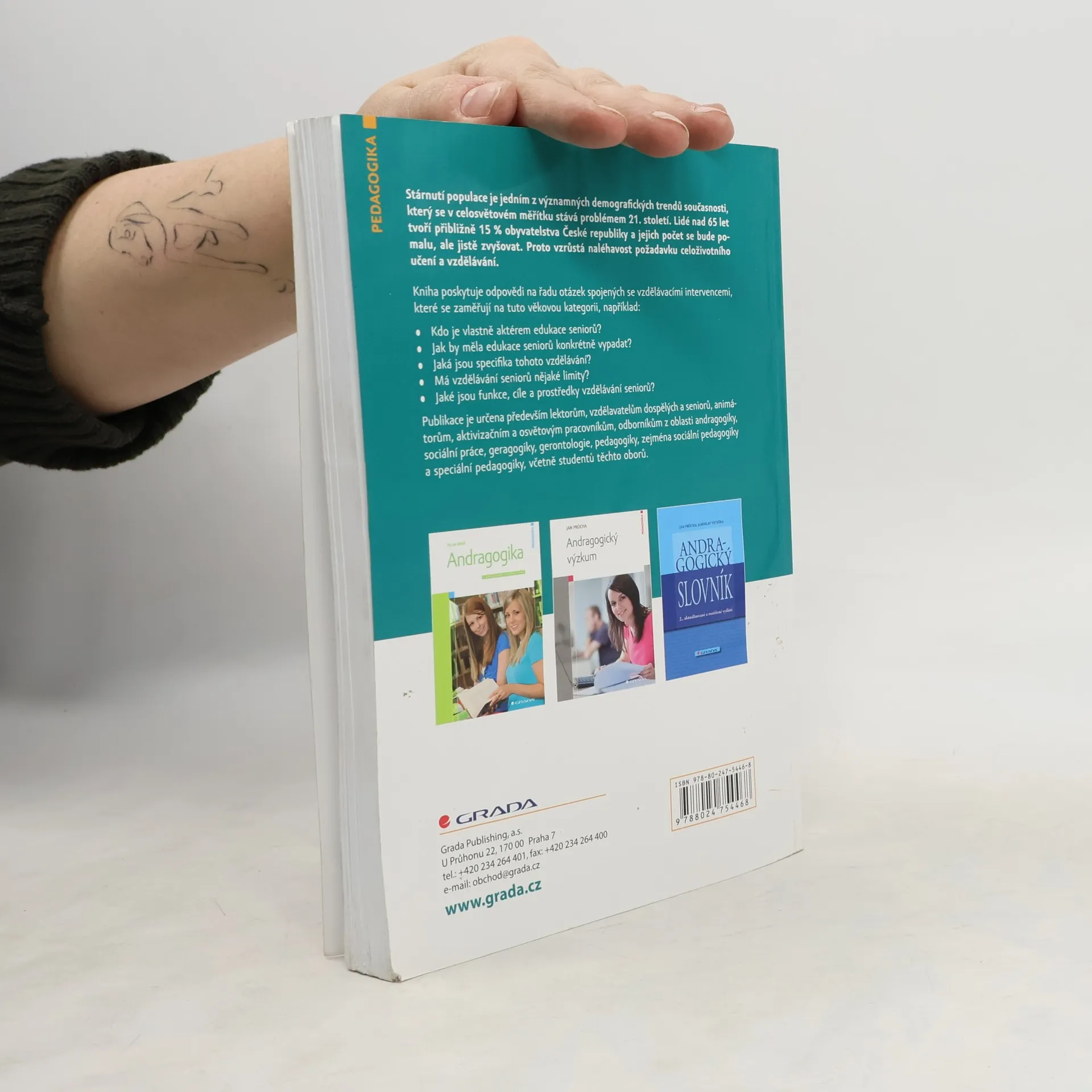 Stárnutí populace je jedním z významných demografických trendů současnosti, který se v celosvětovém měřítku stává problémem 21. století. Lidé nad 65 let tvoří přibližně 15 % obyvatelstva České republiky a jejich počet se bude pomalu, ale jistě zvyšovat. Proto vzrůstá naléhavost požadavku celoživotního učení a vzdělávání. Kniha poskytuje odpovědi na řadu otázek spojených se vzdělávacími intervencemi, které se zaměřují na tuto věkovou kategorii, například: • Kdo je vlastně aktérem edukace seniorů? • Jak by měla edukace seniorů konkrétně vypadat? • Jaká jsou specifika tohoto vzdělávání? • Má vzdělávání seniorů nějaké limity? • Jaké jsou funkce, cíle a prostředky vzdělávání seniorů? Publikace je určena především lektorům, vzdělavatelům dospělých a seniorů, animátorům, aktivizačním a osvětovým pracovníkům, odborníkům z oblasti andragogiky, sociální práce, geragogiky, gerontologie, pedagogiky, zejména sociální pedagogiky a speciální pedagogiky, včetně studentů těchto oborů.