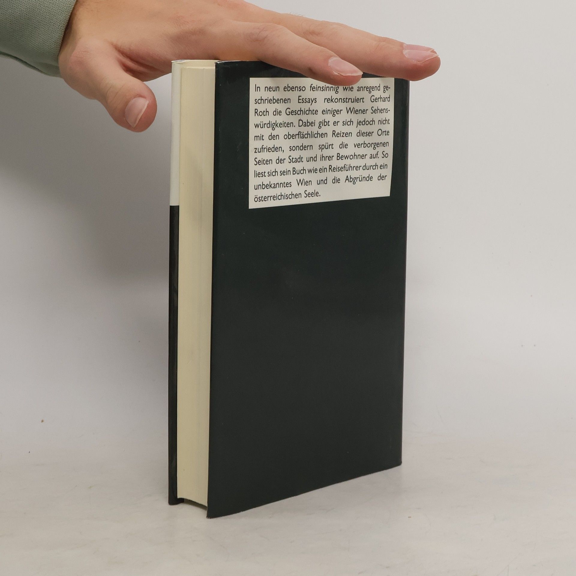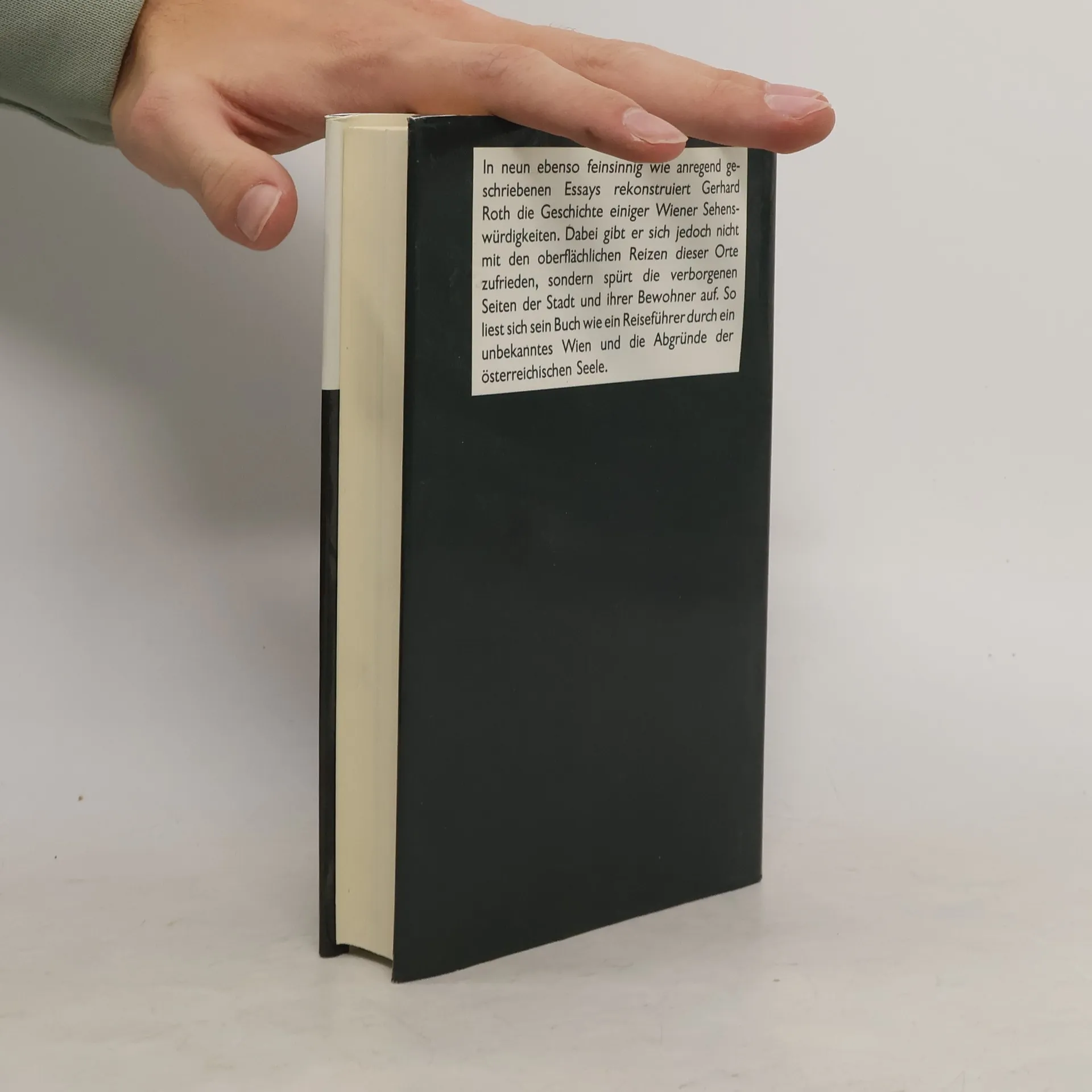 Jahrelang durchforschte Gerhard Roth die licht abgewandten Bezirke Wiens. Auf seinen Streifzügen durch die Hauptstadt ließ er sich nicht vom Glanze der ehemaligen k. u. k. Residenzstadt blenden. Er suchte und fand deren realen und ihren seelischen Untergrund. Im FAZ-Magazin publizierte Roth eine Serie mit seinen Erkundungen. Er berichtet darin vom ehemaligen Hetztheater (in dem Tiere so lange aufeinander gehetzt wurden, bis sie todwund verendeten), von den Katakomben in der Inneren Stadt, von den geistesverwirrten Künstlern in der psychiatrischen Anstalt Gugging, vom ehemaligen Judenviertel in der Leopoldstadt; Roth beschreibt das stadtbekannte Männerwohnheim in der Meldemannstraße, in dem Hitler knappe vier Jahre zugebracht hat, stattet dem so genannten Narrenturm und dem Heeresgeschichtlichen Museum Besuche ab. Unversehens gerät der Band zu einem Reiseführer durch die Abgründe der österreichischen Seele.