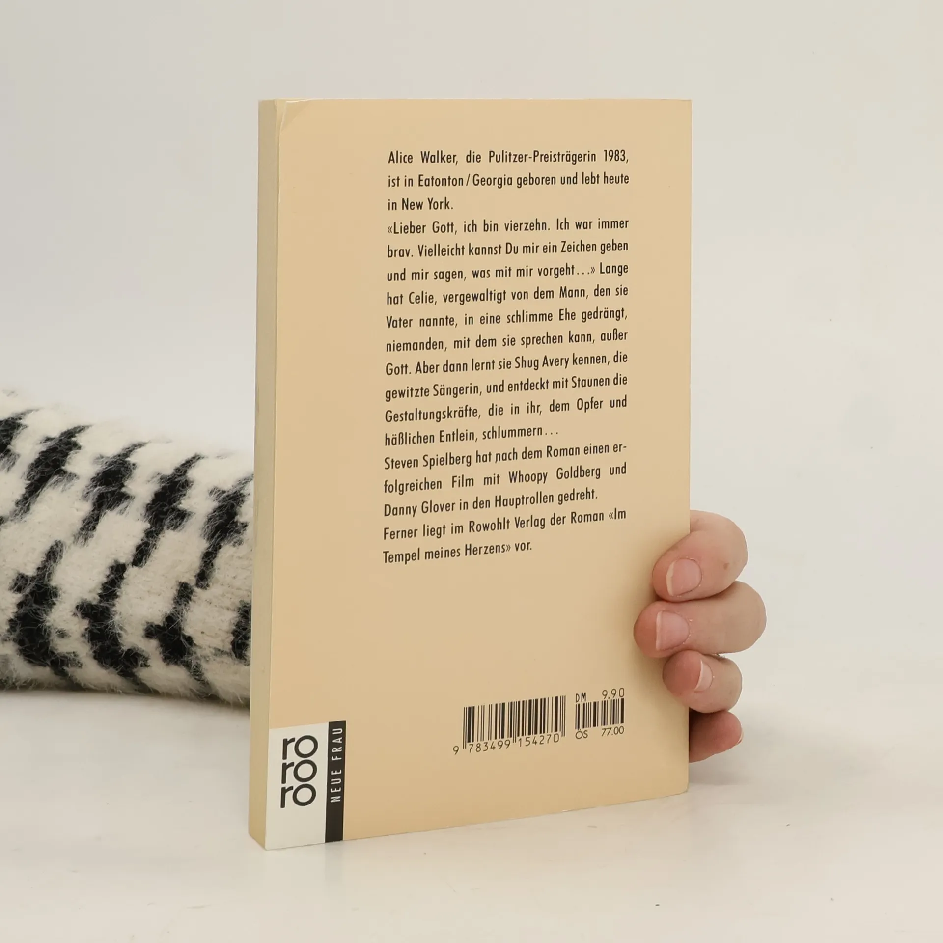 Alice Walker, die Pulitzer-Preisträgerin 1983, ist in Eaton/Georgia geboren und lebt heute in New York. "Lieber Gott, ich bin vierzehn. Ich war immer brav. Vielleicht kannst Du mir ein Zeichen geben und mir sagen, was mit mir vorgeht..." Lange hat Celine, vergewaltigt von dem Mann, den sie Vater nannte, in eine schlimme Ehe gedrängt, niemanden, mit dem sie sprechen kann, außer Gott. Aber dann lernt sie Saug Avery kennen, die gewitzte Sängerin, und entdeckt mit Staunen die Gestaltungskräfte, die in ihrem dem Opfer und hässlichen Entlein schlummern... Steven Spielberg hat nach dem Roman einen erfolgreichen Film mit Whoopi Goldberg und Danny Glover in den Hauptrollen gedreht. Von Alice Walker liegen weitere Romane vor, u.a. "Im Tempel meines Herzens" (rororo 13163), "Meridian" (rororo 13359), "Sie hütet das Geheimnis des Glücks" (geb., Rothwohlt 1993) sowie "Ihr blauer Körper... Gesammelte Gedichte 1965 - 1990" Band 1 (rororo 13256/ Englisch - Deutsch)