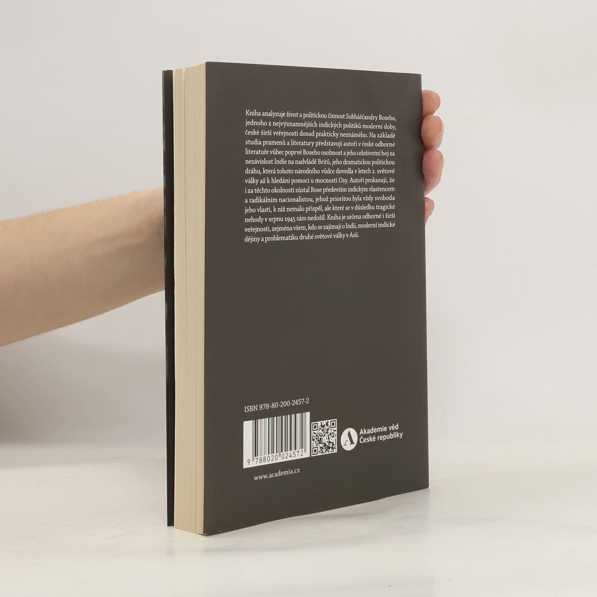Kniha analyzuje život a politickou činnost Subháščandry Boseho, jednoho z nejvýznamnějších indických politiků moderní doby, české širší veřejnosti dosud prakticky neznámého. Na základě studia pramenů a literatury představují autoři Boseho osobnost a jeho celoživotní boj za nezávislost Indie z nadvlády Britů, jeho dramatickou politickou dráhu, která tohoto národního vůdce dovedla během 2. světové války až k hledání pomoci mocností Osy. I za těchto okolností zůstal Bose především indickým vlastencem a radikálním nacionalistou, jehož prioritou byla vždy svoboda jeho vlasti, jíž se však v důsledku tragické nehody v srpnu 1945 sám nedožil. Kniha je určena všem, kdo se zajímají o Indii, moderní indické dějiny a problematiku druhé světové války v Asii.