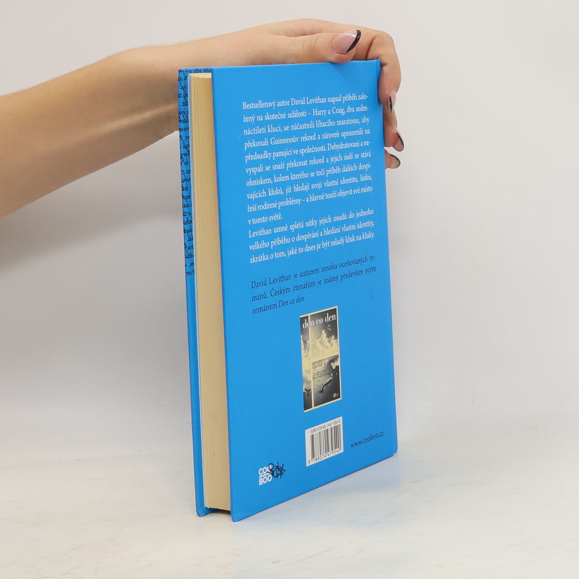 David Levithan napsal příběh založený na skutečné události – Harry a Craig, dva sedmnáctiletí kluci, se zúčastnili líbacího maratonu, aby překonali Guinnessův rekord a zároveň upozornili na předsudky panující ve společnosti. Dehydratovaní a nevyspalí se snaží překonat rekord a jejich úsilí se stává ohniskem, kolem kterého se točí příběh dalších dospívajících kluků, již hledají svoji vlastní identitu, lásku, řeší rodinné problémy – a hlavně touží objevit své místo v tomto světě. Levithan umně splétá nitky jejich příběhu do jednoho velkého o dospívání a hledání vlastní identity, zkrátka tom, jaké to dnes je být mladý kluk na kluky. David Levithan je autorem mnoha oceňovaných románů. Českým čtenářům je známý především svým románem Den co den. Dále pak knihami Nick a Norah: až do ochraptění a Dash & Lily – Kniha přání, které napsal společně s Rachel Cohnovou.