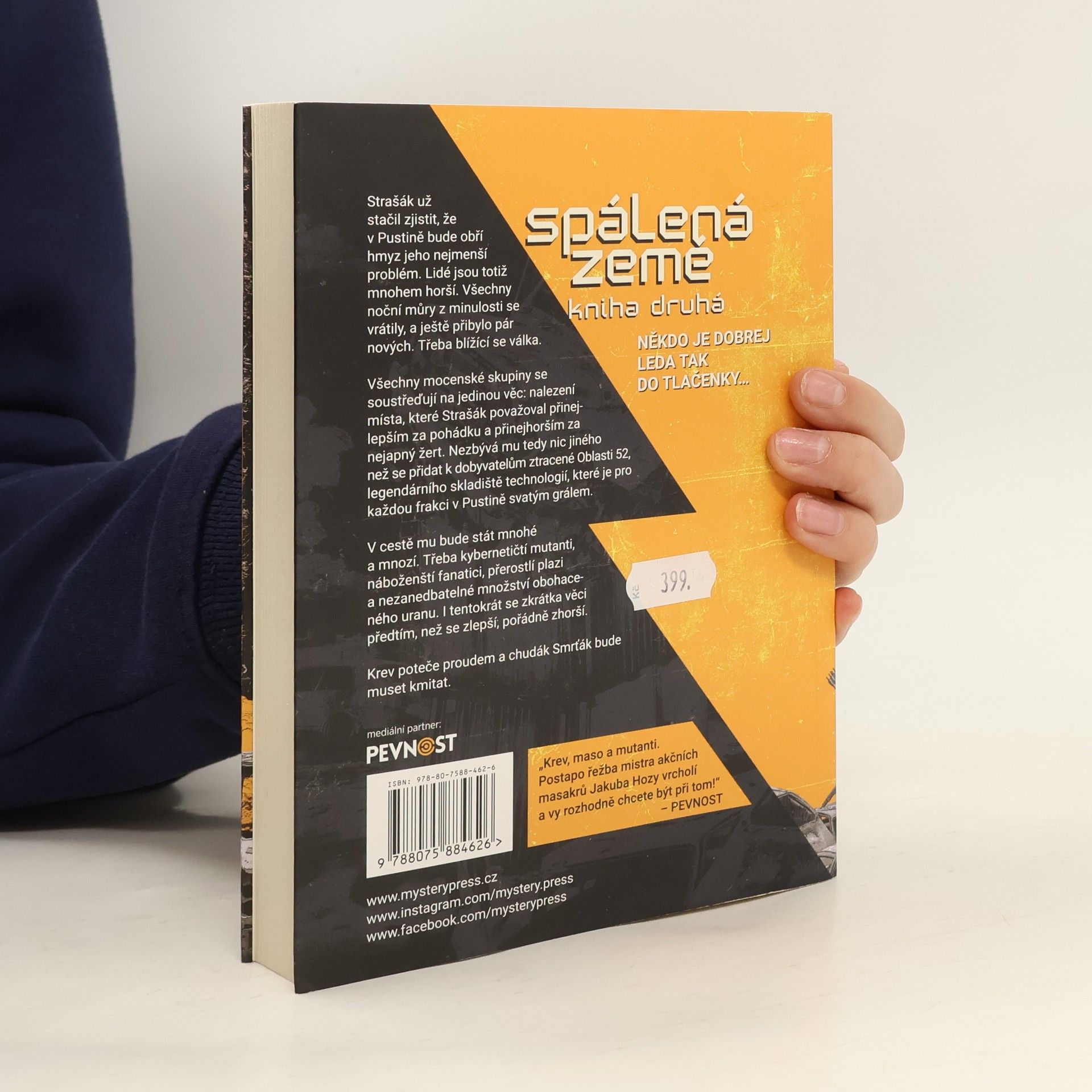 NĚKDO JE DOBREJ LEDA TAK DO TLAČENKY…Strašák už stačil zjistit, že v Pustině bude obří hmyz jeho nejmenší problém. Lidé jsou totiž mnohem horší. Všechny noční můry z minulosti se vrátily, a ještě přibylo pár nových. Třeba blížící se válka.Všechny mocenské skupiny se soustřeďují na jedinou věc: nalezení místa, které Strašák považoval přinejlepším za pohádku a přinejhorším za nejapný žert. Nezbývá mu tedy nic jiného než se přidat k dobyvatelům ztracené Oblasti 52, legendárního skladiště technologií, které je pro každou frakci v Pustině svatým grálem.V cestě mu bude stát mnohé a mnozí. Třeba kybernetičtí mutanti, náboženští fanatici, přerostlí plazi a nezanedbatelné množství obohaceného uranu. I tentokrát se zkrátka věci předtím, než se zlepší, pořádně zhorší.Krev poteče proudem a chudák Smrťák bude muset kmitat.____„Krev, maso a mutanti. Postapo řežba mistra akčních masakrů Jakuba Hozy vrcholí a vy rozhodně chcete být při tom!“ – PEVNOST