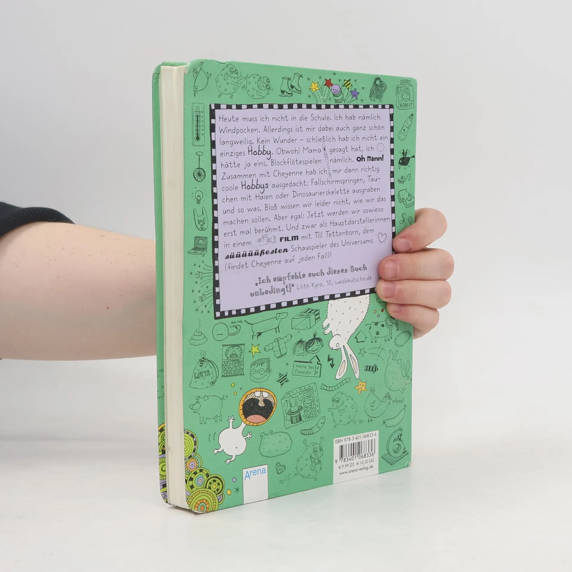 Heute muss ich nicht in die Schule. Ich hab nämlich Windpocken. Allerdings ist mir dabei auch ganz schön langweilig. Kein Wunder - schließlich hab ich nicht ein einziges Hobby. Zusammen mit Cheyenne hab ich mir dann erst mal richtig coole Hobbys ausgedacht: Fallschirmspringen und Tauchen mit Haien und Dinosaurierskelette ausgraben und so was. Bloß wissen wir leider nicht, wie wir das machen sollen. Aber egal: Jetzt werden wir sowieso erstmal berühmt. Und zwar als Hauptdarstellerinnen in einem Film mit Till Tettenborn, dem süüüüüßesten Schauspieler des Universums (findet Cheyenne auf jeden Fall)!