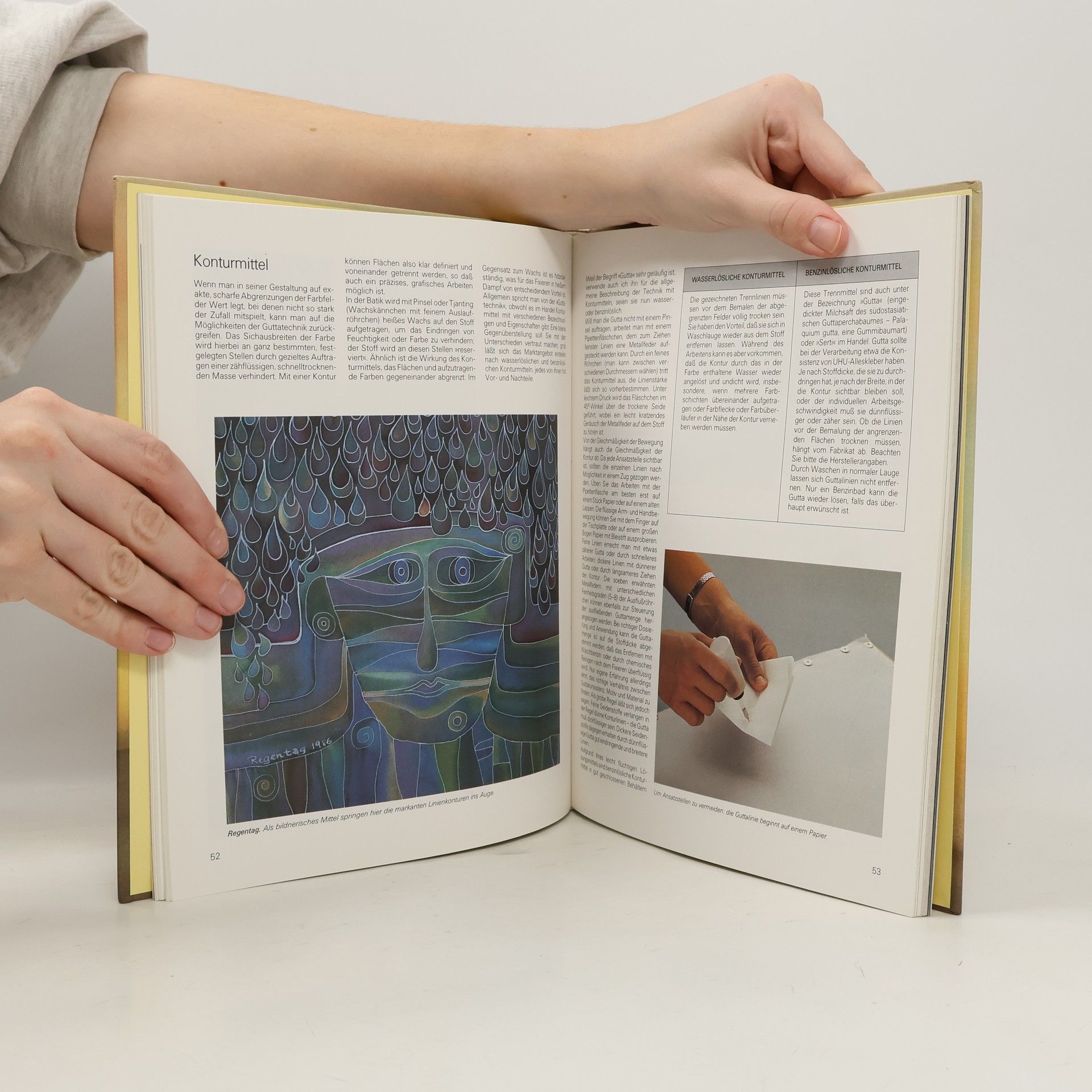 Reich illustrierte Einführung in die Geschichte der Seidenherstellung und die Techniken der Seidenmalerei mit zahlreichen Anregungen für Anfänger und Fortgeschrittene (Quelle: http://www.bsz-bw.de/).