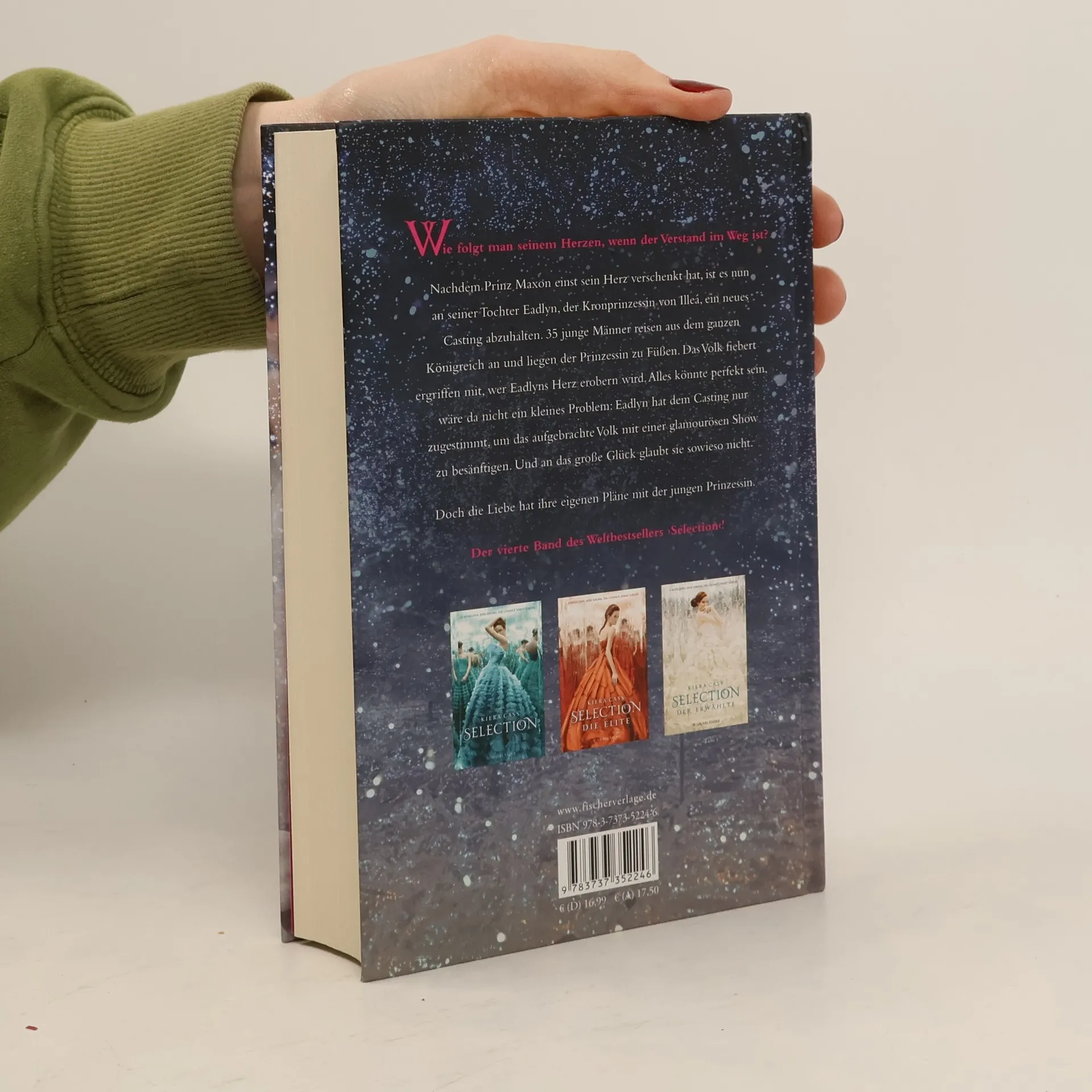 Die romantischste Liebesgeschichte seit es Prinzen und Prinzessinnen gibt geht in die vierte Runde – aber dieses Mal wird ALLES anders! Die Liebesgeschichte um America, Maxon und Aspen hat ihr Ende gefunden – aber die Geschichte der ›Selection‹ ist noch lange nicht vorbei! Nun ist es an Maxons Tochter Eadlyn, der Kronprinzessin, sich ihren Prinzen aus 35 jungen Männern zu erwählen. Alles könnte perfekt sein, wäre da nicht ein Problem: Eadlyn hat dem Casting nur zugestimmt, um das aufgebrachte Volk mit einer glamourösen Show zu besänftigen. Und an die große Liebe glaubt sie sowieso nicht. Aber vielleicht glaubt die Liebe ja an Eadlyn! Fortsetzung der internationalen Bestseller-Serie ›Selection‹!Für Neueinsteiger und Fans