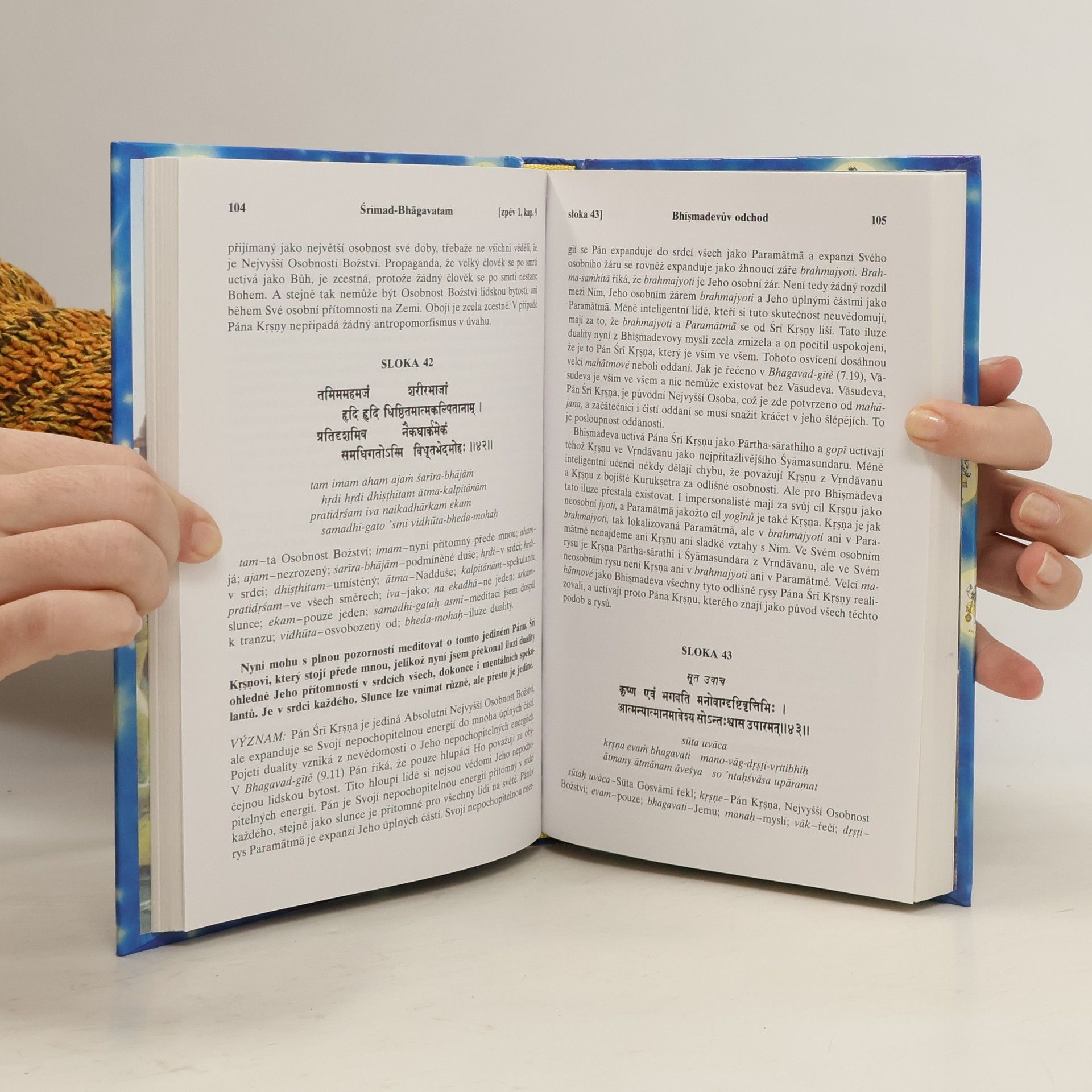 Nábožensko-filozofický text, který dává nahlédnout do indického duchovního odkazu. S původními sanskrtskými texty, přepisem do latinského písma, českými synonymy, překlady a podrobnými výklady.