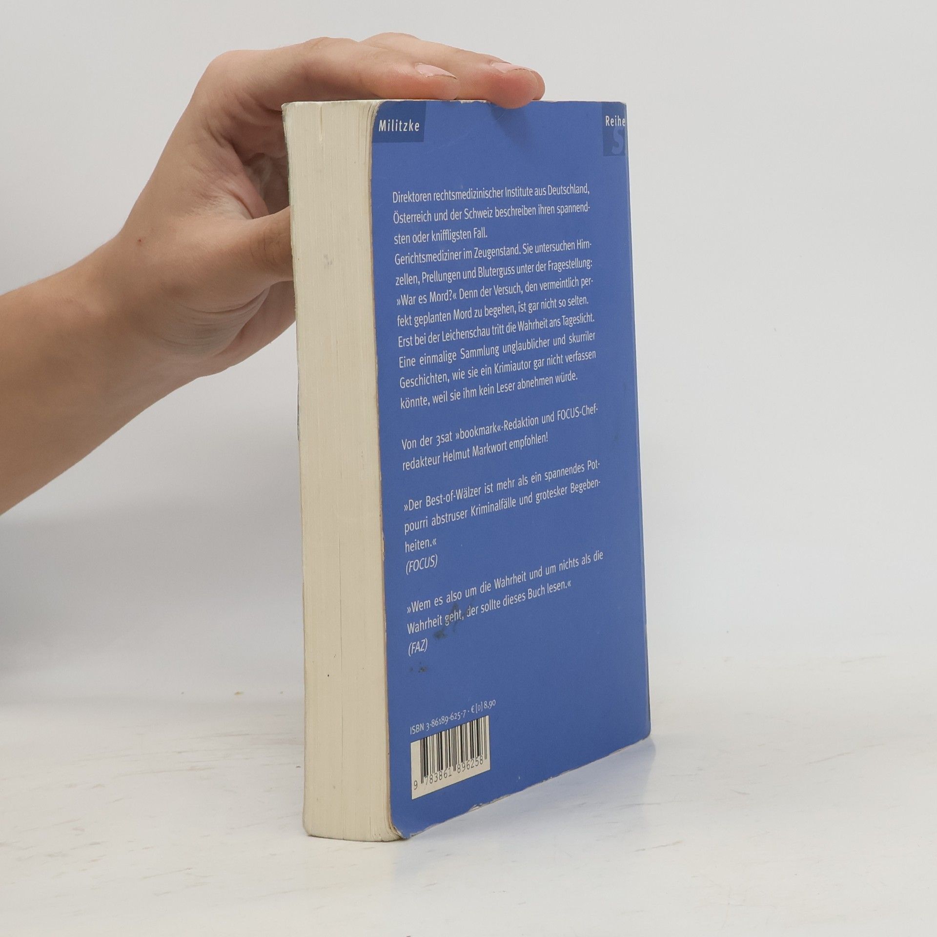 Die einmalige Sammlung unglaublicher und skurriler Fälle, aufgeschrieben von Direktoren rechtsmedizinischer Institute aus Deutschland, Österreich und der Schweiz. Geschichten, wie sie ein Krimiautor gar nicht verfassen könnte, weil sie ihm kein Leser abnehmen würde. „Wem es also um die Wahrheit und um nichts als die Wahrheit geht, der sollte dieses Buch lesen.“ FAZ; „In einem Buch erzählen berühmte Rechtsmediziner ihre spannendsten, skurrilsten und kniffligsten Fälle.“ Focus; „Sehr zu empfehlen!“ Thea Dorn