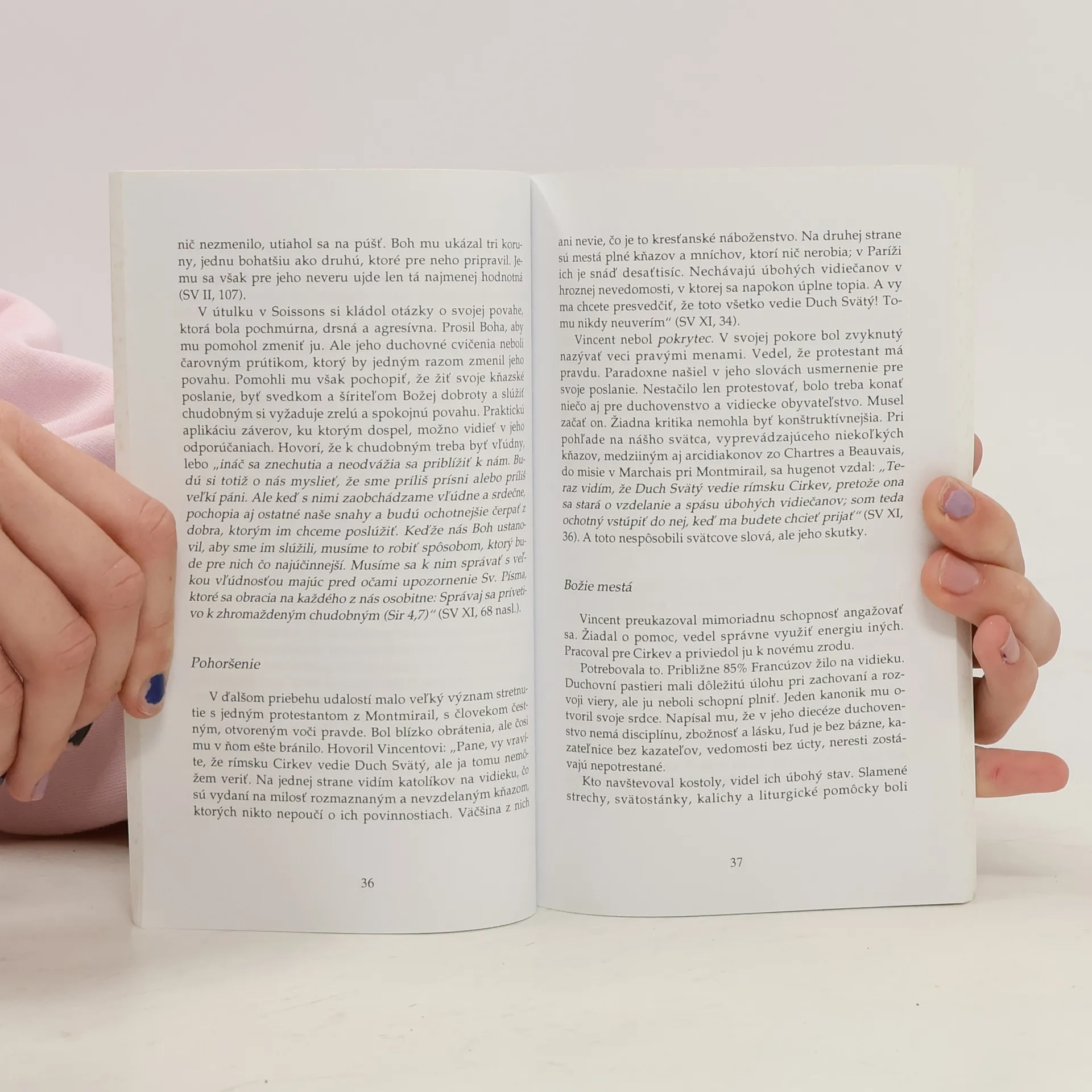 Sv. Vincent je vzor človeka, ktorý bol hlboko ponorený do sveta a zároveň bol človekom intenzívnej modlitby. Táto knižka nás povedie na púť do mesta a medzi ľudí, kde žil sv. Vincent. Tak sa aj my snažíme vidieť Boha, ako ho videl on, vidieť ľudí, ako ich on videl, cítiť, čo on cítil. Naučíme sa, čo sa modlil, ako sa modlil a za koho sa modlil. Na konci možno objavíme nové obzory pre našu činnosť a našu modlitbu. Je to kniha, ktorá nám má pomôcť meditovať a obnoviť našu modlitbu.