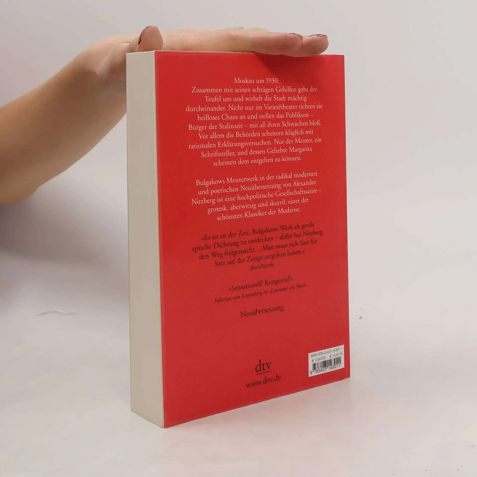 Moderner Klassiker Moskau um 1930: Zusammen mit seinen Gehilfen geht der Teufel um und wirbelt die Stadt mächtig durcheinander. Im Varietétheater richten sie ein heilloses Chaos an und stellen das Publikum – Bürger der Stalinzeit – mit all ihren Schwächen bloß. Die Behörden scheitern kläglich mit rationalen Erklärungsversuchen. Nur zwei Personen entgehen Schreck und Unbill: Der Meister – ein Schriftsteller, der seine Tage in der Psychiatrie zubringt – und Margarita, seine Geliebte, die sich in ihrem gutbürgerlichen Leben nach ihm sehnt. Bulgakows Meisterwerk ist eine auch heute noch hochpolitische Gesellschaftssatire.