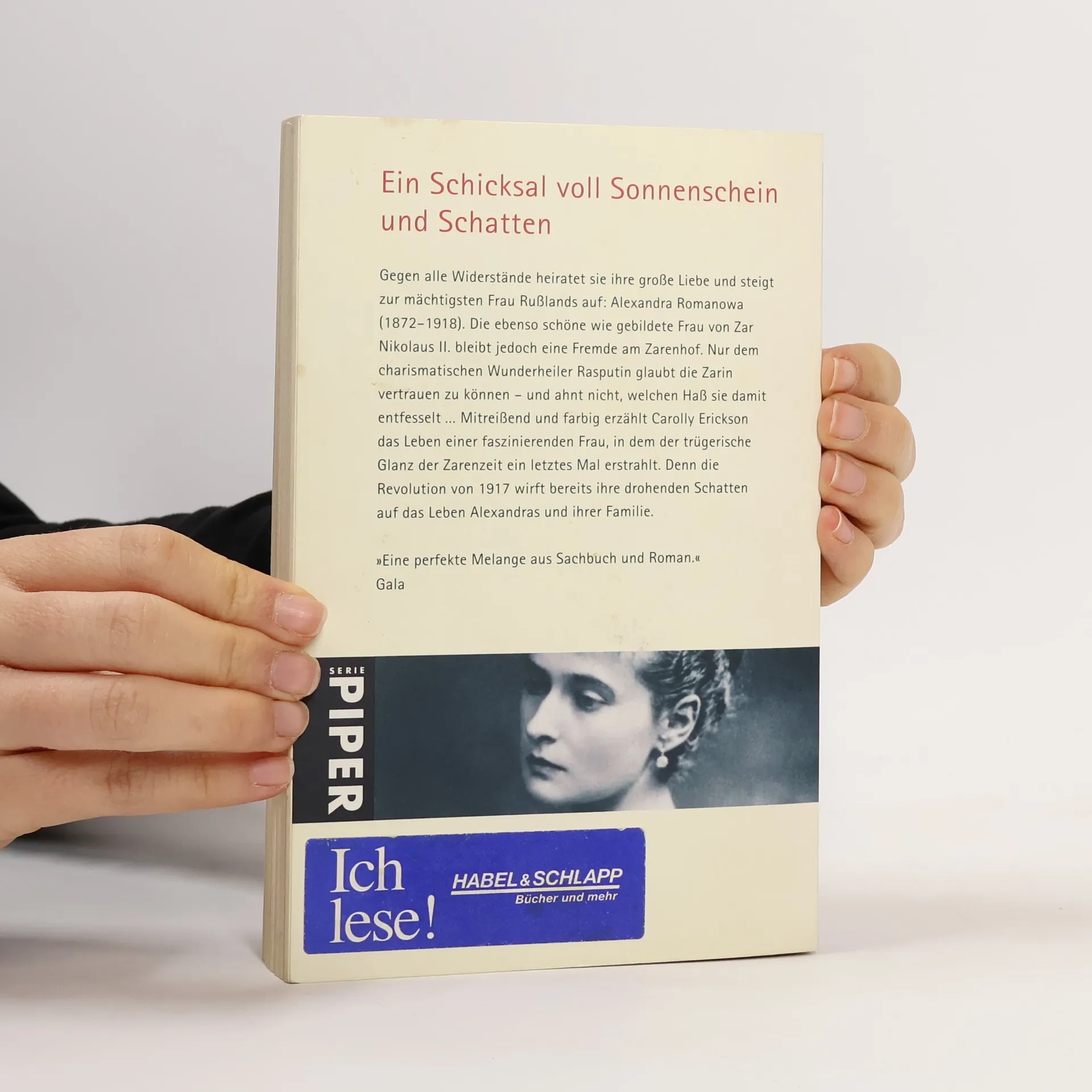 Gegen alle Widerstände heiratet sie ihre große Liebe und steigt zur mächtigsten Frau Rußlands auf: Alexandra Romanowa (1872–1918). Die ebenso schöne wie gebildete Frau von Zar Nikolaus II. bleibt jedoch eine Fremde am Zarenhof. Nur dem charismatischen Wunderheiler Rasputin glaubt die Zarin vertrauen zu können – und ahnt nicht, welchen Haß sie damit entfesselt. Mitreißend und farbig erzählt Carolly Erickson das Leben einer faszinierenden Frau, in dem der trügerische Glanz der Zarenzeit ein letztes Mal erstrahlt. Denn die Revolution von 1917 wirft bereits ihre drohenden Schatten auf das Leben Alexandras und ihrer Familie. 'Eine perfekte Melange aus Sachbuch und Roman.' Gala
