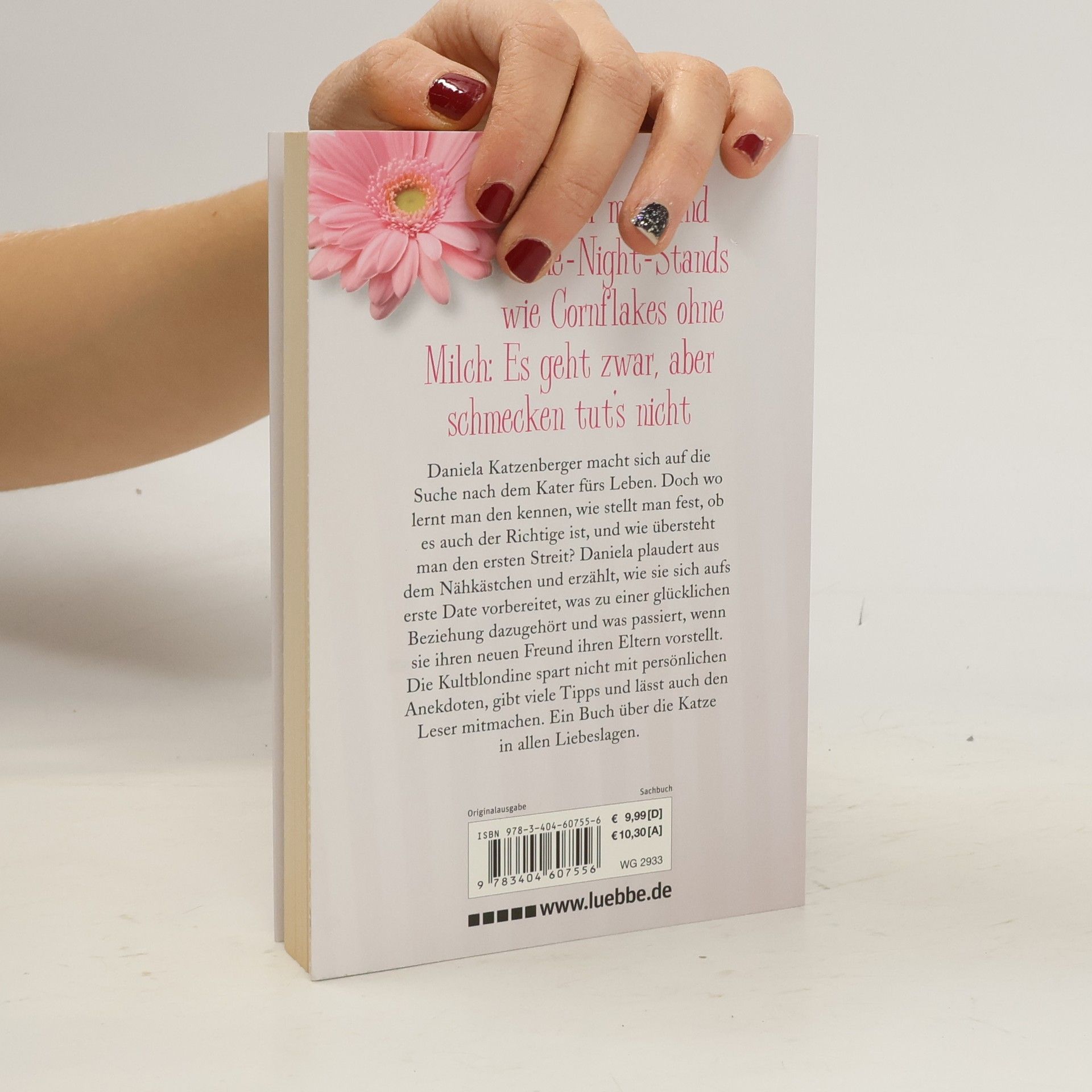 Daniela Katzenberger macht sich auf die Suche nach dem richtigen Kater fürs Leben. Doch wo lernt man den kennen, wie stellt man fest, ob es auch der Richtige ist, und wie übersteht man den ersten Streit? Daniela plaudert aus dem Nähkästchen und erzählt, wie sie sich aufs erste Date vorbereitet, was zu einer glücklichen Beziehung dazugehört und was passiert, wenn sie ihren neuen Freund ihren Eltern vorstellt. Die Kultblondine spart nicht mit persönlichen Anekdoten, gibt viele Tipps und lässt auch den Leser mitmachen. Ein Buch über die Katze in allen Liebeslagen.