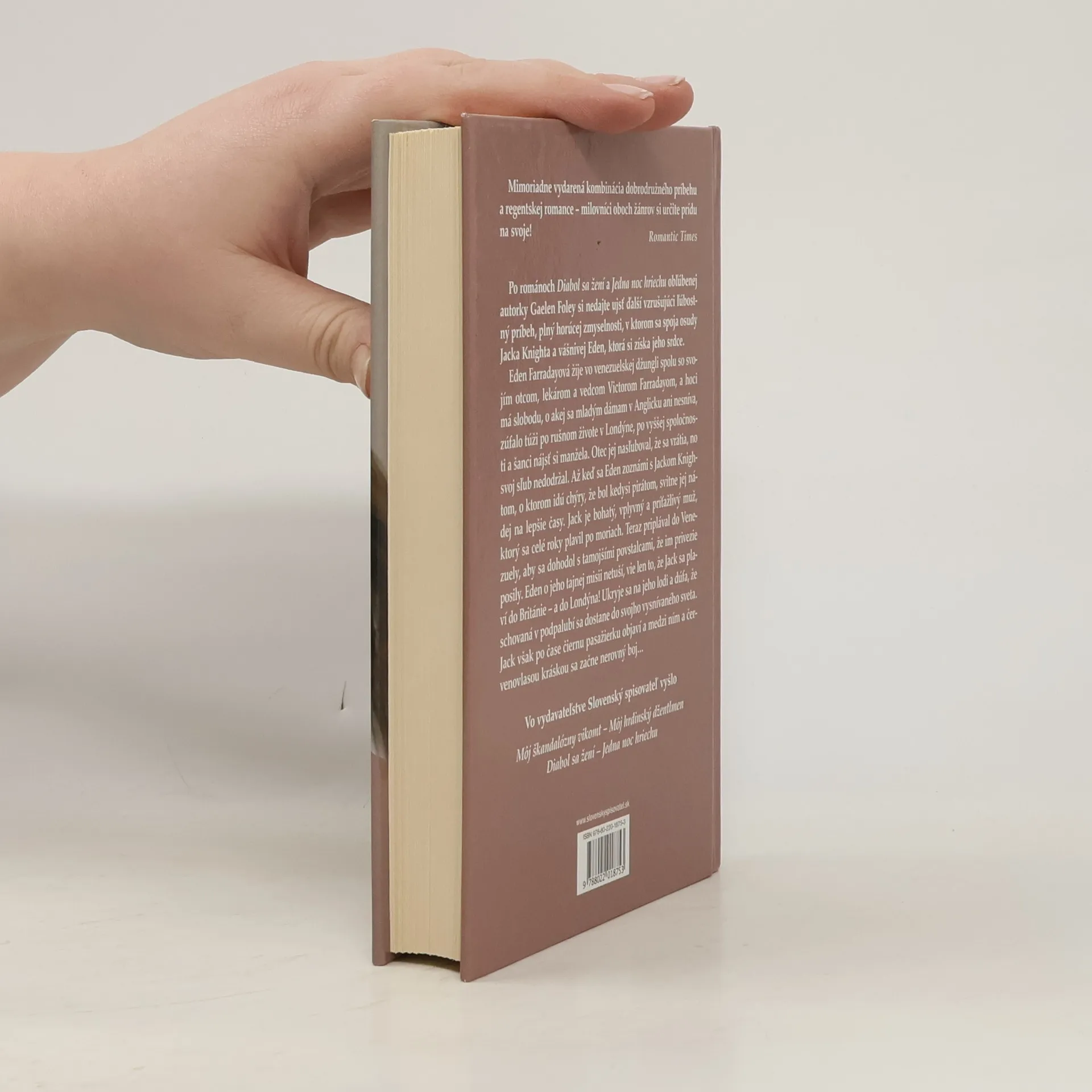 Po románe Jedna noc hriechu je tu ďalšia skvelá romanca o rode Knightovcov. Eden Farradayová žije spolu so svojím otcom vo venezuelskej džungli, a hoci má slobodu, o akej sa mladým dámam v Anglicku ani nesníva, márne túži po rušnom živote v Londýne a šanci nájsť si manžela. Až keď sa zoznámi s Jackom Knightom, svitne jej nádej na lepšie časy. Jack, bohatý, vplyvný a príťažlivý muž, priplával do Venezuely s tajným poslaním, o ktorom Eden nič netuší. Vie len to, že Jack sa plaví do Británie. Ukryje sa na jeho lodi a dúfa, že schovaná v podpalubí sa dostane do vysnívaného sveta. Jack však po čase čiernu pasažierku objaví a medzi ním a červenovlasou kráskou sa začne nerovný boj...