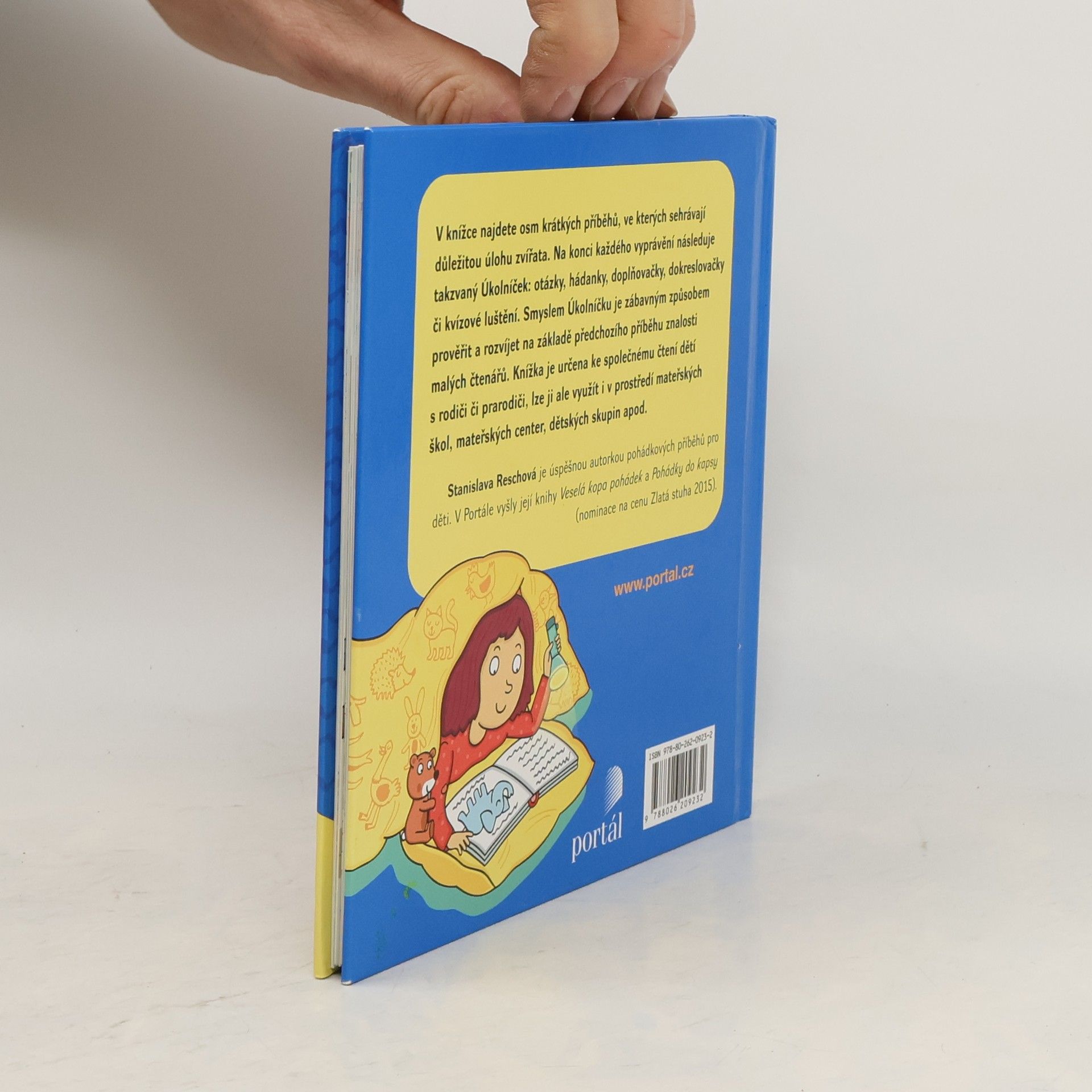 Soubor osmi krátkých příběhů stylově odpovídajících autorčině Veselé kopě pohádek či Pohádkám do kapsy. Ve všech příbězích sehrávají důležitou úlohu zvířata. Na konci každého příběhu následuje takzvaný Úkolníček: otázky, hádanky, doplňovačky, dokreslovačky či kvízové luštění. Smyslem Úkolníčku je zábavným způsobem prověřit a dále rozvíjet znalosti malých čtenářů. Kniha je určená ke společnému čtení dětí s rodiči či prarodiči, sekundárně ji však lze využít i v prostředí mateřských škol, mateřských center, dětských skupin apod. Stanislava Reschová je úspěšnou autorkou pohádkových příběhů pro děti. V Portále vyšly její knihy Veselá kopa pohádek a Pohádky do kapsy (nominace na cenu Zlatá stuha 2015).