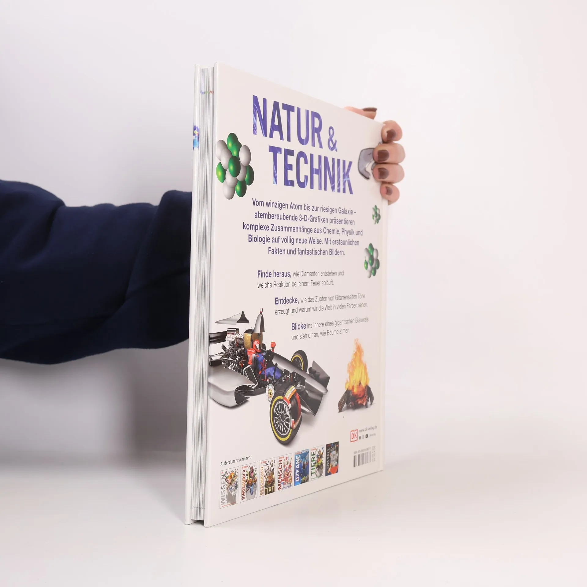 Naturwissenschaften für Kinder werden in spektakulären Bildern erklärt. Wie entsteht Schall und wie wird Wärme erzeugt? Dieses Buch beantwortet Fragen zu Natur und Technik mithilfe spezieller 3-D-Grafiken. Chemie, Physik und Biologie werden durch zahlreiche Abbildungen, Querschnitte und Diagramme verständlich gemacht, ergänzt durch alltagsnahe sowie ungewöhnliche Beispiele und spannende Details. Es bietet einen aktuellen Überblick über naturwissenschaftliche Themen. Was geschieht bei einer chemischen Reaktion? Wie funktioniert ein Teleskop? Woraus besteht eine Galaxie? Kinder erhalten einen einzigartigen Einblick in vielfältige Themenbereiche, wobei die Informationen durch aufwendige 3-D-Grafiken zielgruppengerecht aufbereitet sind. Beispiele veranschaulichen die Sachverhalte: Die Funktion des Nervensystems wird durch einen fressenden Gorilla und das Gesetz der Reibung anhand eines coolen Motorrads erklärt. Zu den Inhalten gehören detailreiche Explosionsgrafiken zur Chemie, alltagsnahe Beispiele aus der Physik, sensationelle Abbildungen zur Biologie und spannende Zusatzfakten. Clevere Extras wie Chroniken zu Meilensteinen der Fachbereiche, eine Übersicht zu Größenordnungen im All, die wichtigsten Maßeinheiten und ein umfangreiches Glossar runden die visuelle Enzyklopädie ab. Mit diesen beeindruckenden 3-D-Grafiken wird das Lernen über Naturwissenschaften zum Vergnügen und fördert das Interesse an MINT-Fächern.