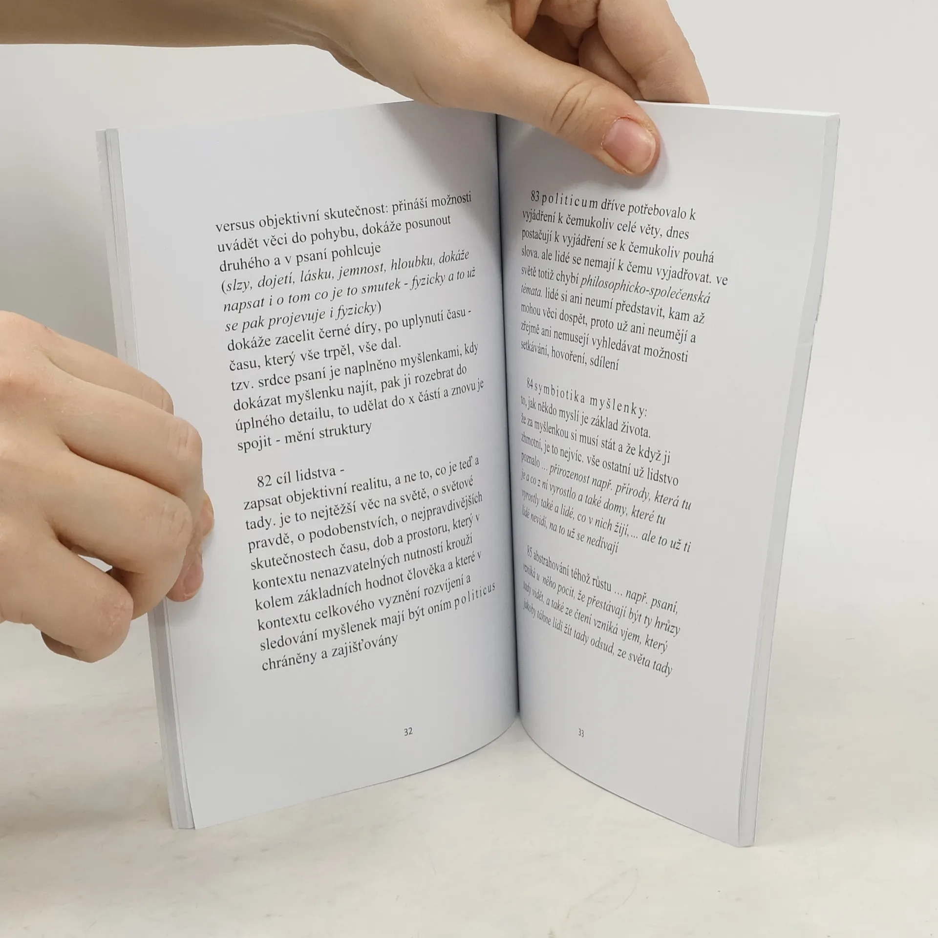 Rozsah a obsah: Krátké, takřka prozaické filozofické úvahy týkající se životní moudrosti, praktické filozofie, etiky, morálky, existence, společnosti, skutečnosti, myšlení a mysli, duše, poznání, logiky, filozofické antropologie, krásy atd.