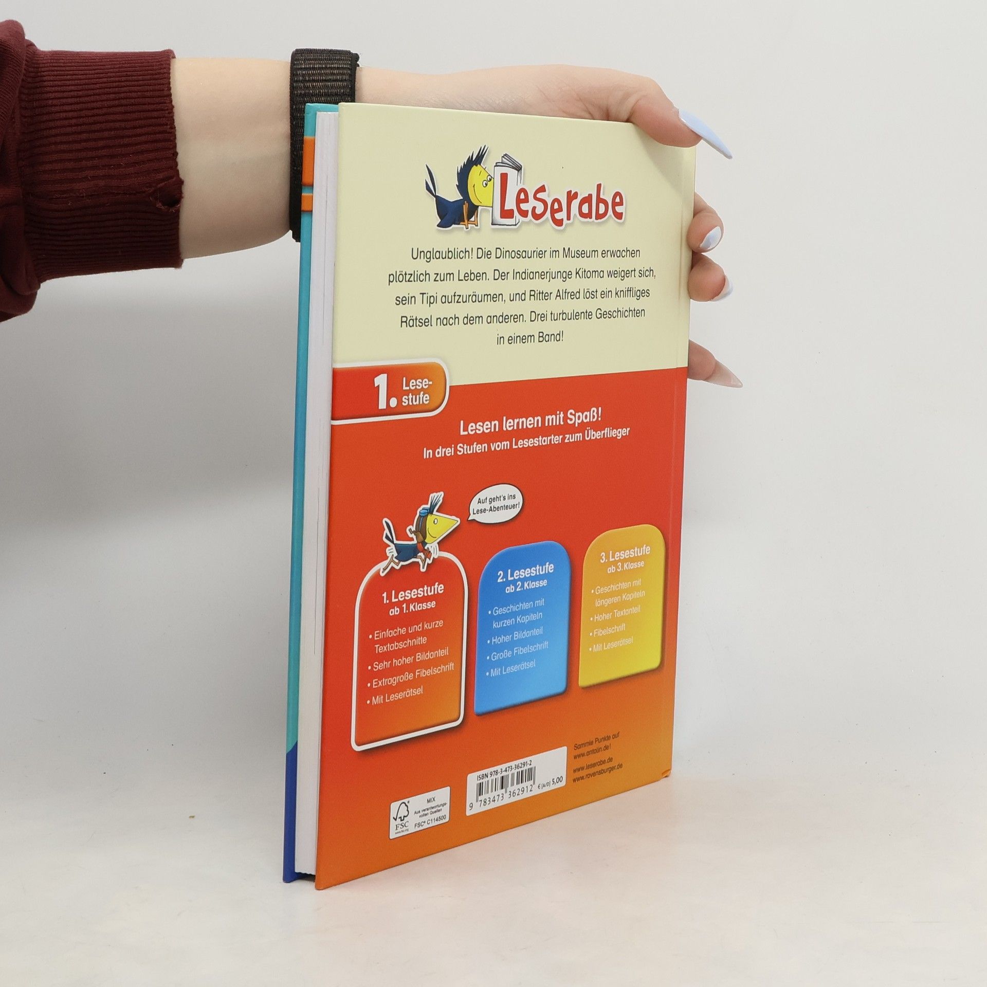 Die Dinosaurier im Museum erwachen plötzlich zum Leben, Ritter Alfred geht auf Schatzsuche und ein Indianerjunge entdeckt auf der Bärenjagd verdächtige Spuren. Drei abenteuerliche Geschichten in einem Band! Lesen lernen wie im Flug! Die Kinderbücher der Reihe Leserabe - 1. Lesestufe wurden mit Pädagogen entwickelt und richten sich an Leseanfänger ab der 1. Klasse. Kurze Texte in großer Fibelschrift sichern erste Leseerfolge und steigern die Lesekompetenz von Mädchen und Jungen ab 6 Jahren. Empfohlen von Stiftung Lesen, gelistet bei Antolin. Weitere Informationen auf leserabe. de.
