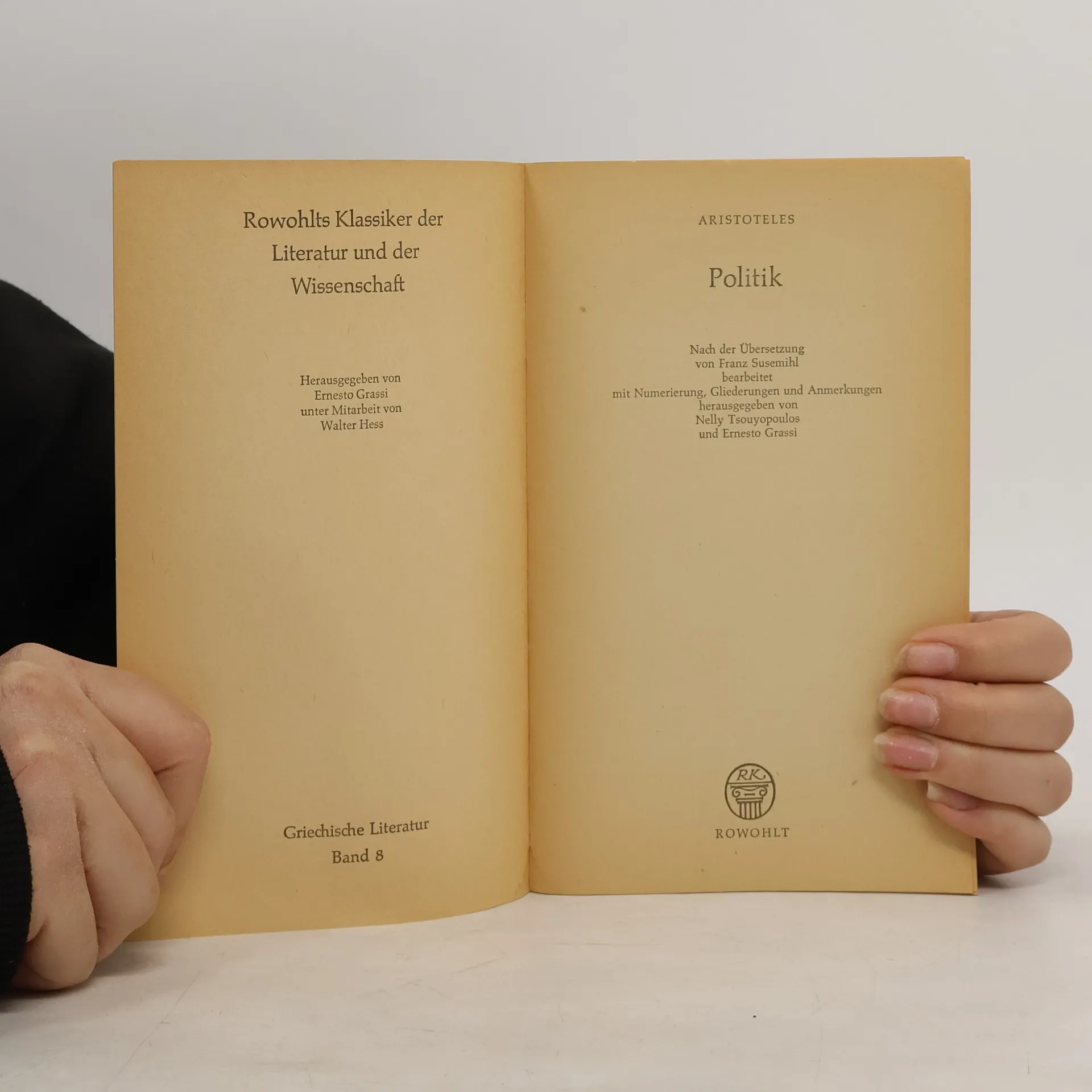„Von Natur aus ist der Mensch ein politisches Wesen“. Diese Einsicht sprach Aristoteles (384-322) als erster aus. Die begriffliche Fassung der unterschiedlichen Formen staatlicher Organisation und seine Untersuchungen darüber, welche von ihnen der Bestimmung des Menschen am besten entspräche, begründen die Wissenschaft von der Politik und bilden noch heute ihr Fundament.