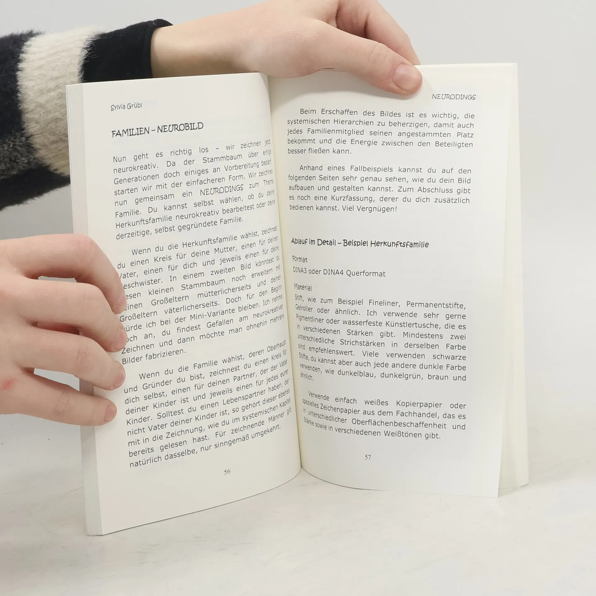 NEURODINGS - systemische Neurobilder - sind eine kreative Art, sich mit der Geschichte Ihrer Familie und Vorfahren zu befassen. Sie beschäftigen sich schöpferisch und effektiv mit Themen, die sich seit Generationen wiederholen. Positive Veränderung durch neurokreatives Zeichnen führt zu neuen Gedanken und Verhaltensweisen. Ob Partner, Kollegen, Verwandte, Freunde,... lösen Sie sich von alten Mustern und gestalten Sie die Beziehung zu sich selbst und anderen neu! Ein faszinierendes Vergnügen für alle, die Beziehungsthemen selbst verbessern und sich kreativ betätigen wollen. NEURODINGS-Begründerin und Autorin Sylvia Grübl beschreibt in ihrem zweiten Buch zur Methode: +Einstieg ins neurosystemische Zeichnen +Schritt-für-Schritt-Anleitung +Hintergrund und Wirkung +Tipps zur praktischen Selbsterfahrung +Fallbeispiele