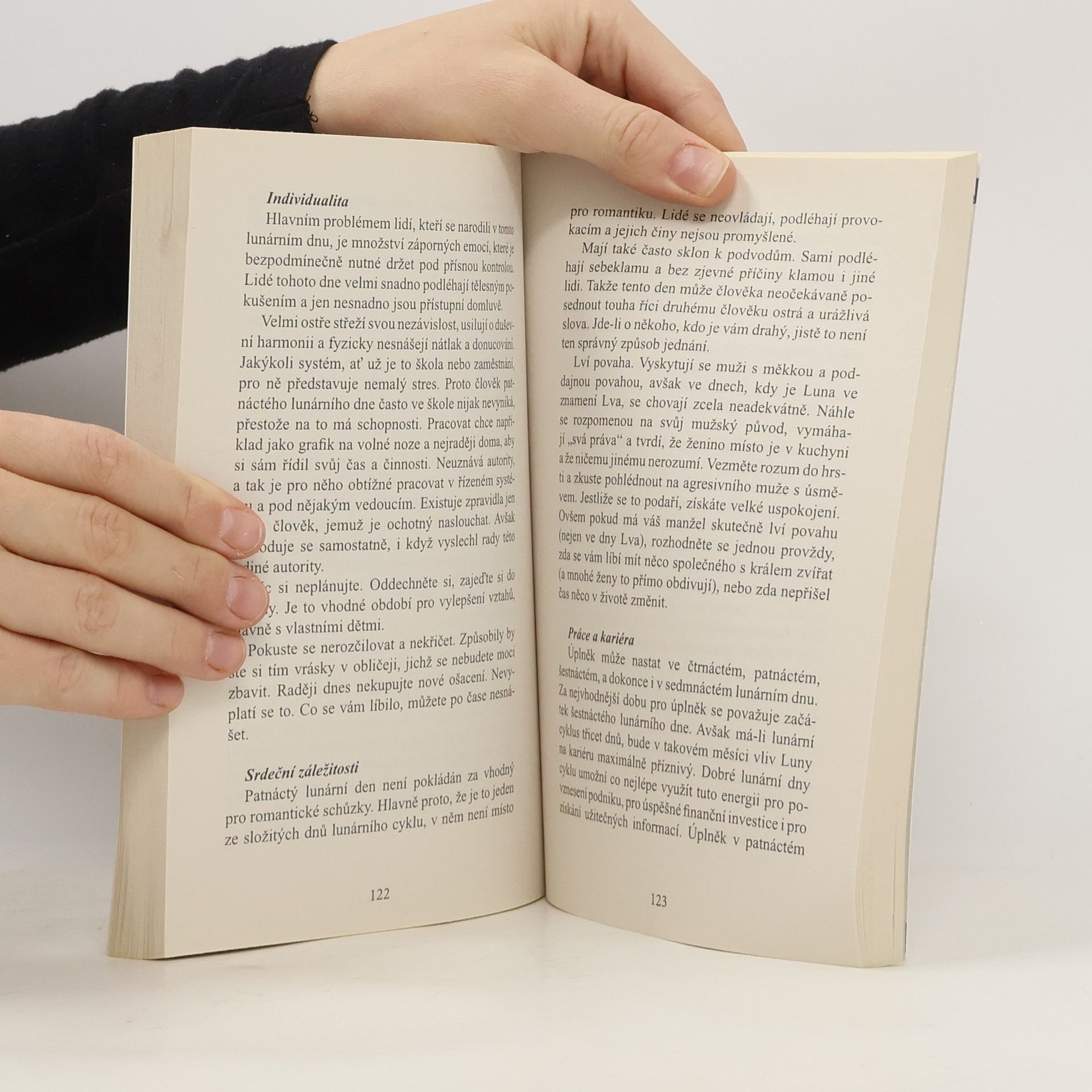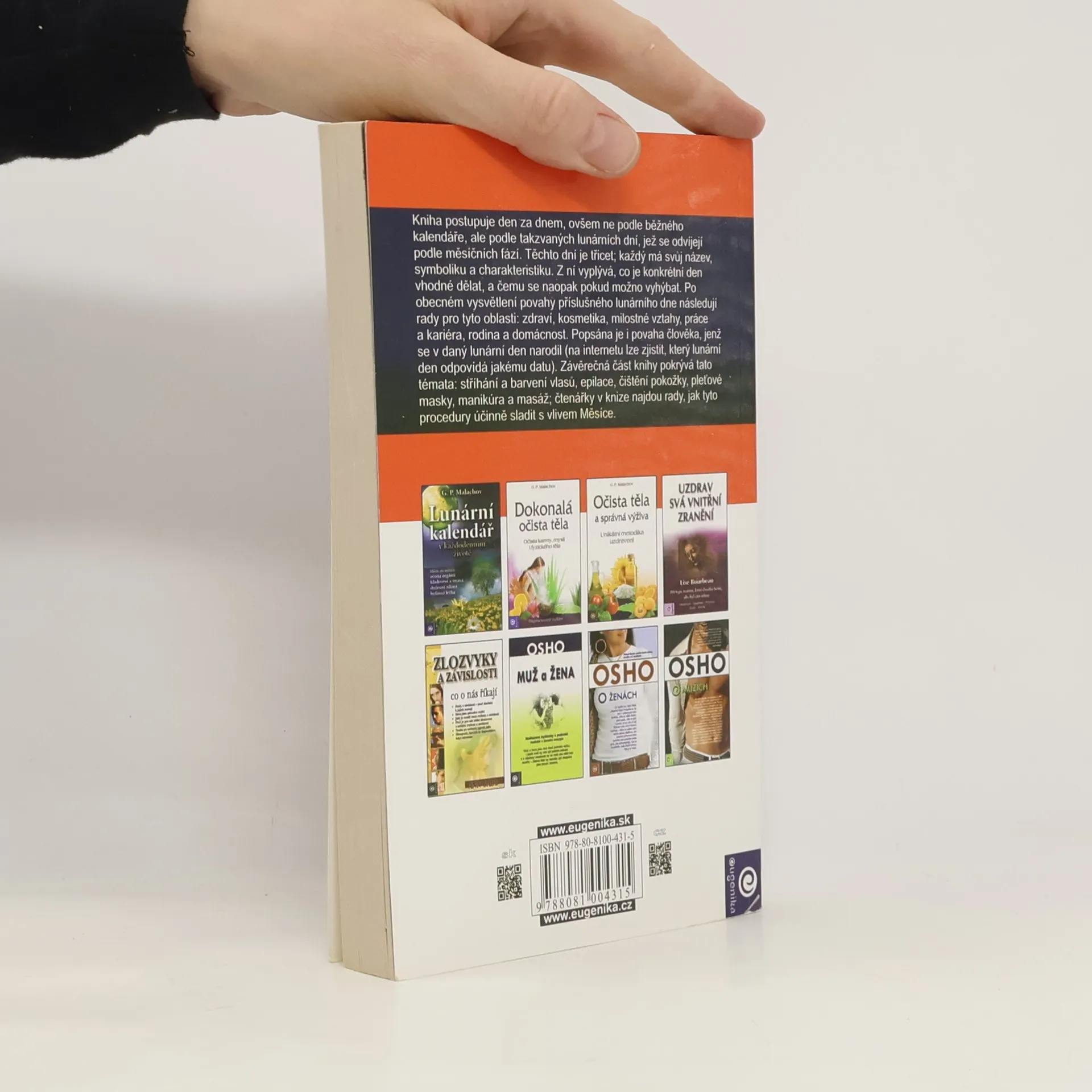 Kniha postupuje den za dnem, ovšem ne podle běžného kalendáře, ale podle takzvaných lunárních dní, jež se odvíjejí podle měsíčních fází. Těchto dní je třicet; každý má svůj název, symboliku a charakteristiku. Z ní vyplývá, co je konkrétní den vhodné dělat, a čemu se naopak pokud možno vyhýbat. Po obecném vysvětlení povahy příslušného lunárního dne následují rady pro tyto oblasti: zdraví, kosmetika, milostné vztahy, práce a kariéra, rodina a domácnost. Popsána je i povaha člověka, jenž se v daný lunární den narodil (na internetu lze zjistit, který lunární den odpovídá jakému datu). Závěrečná část knihy pokrývá tato témata: stříhání a barvení vlasů, epilace, čištění pokožky, pleťové masky, manikúra a masáž; čtenářky v knize najdou rady, jak tyto procedury účinně sladit s vlivem Měsíce.