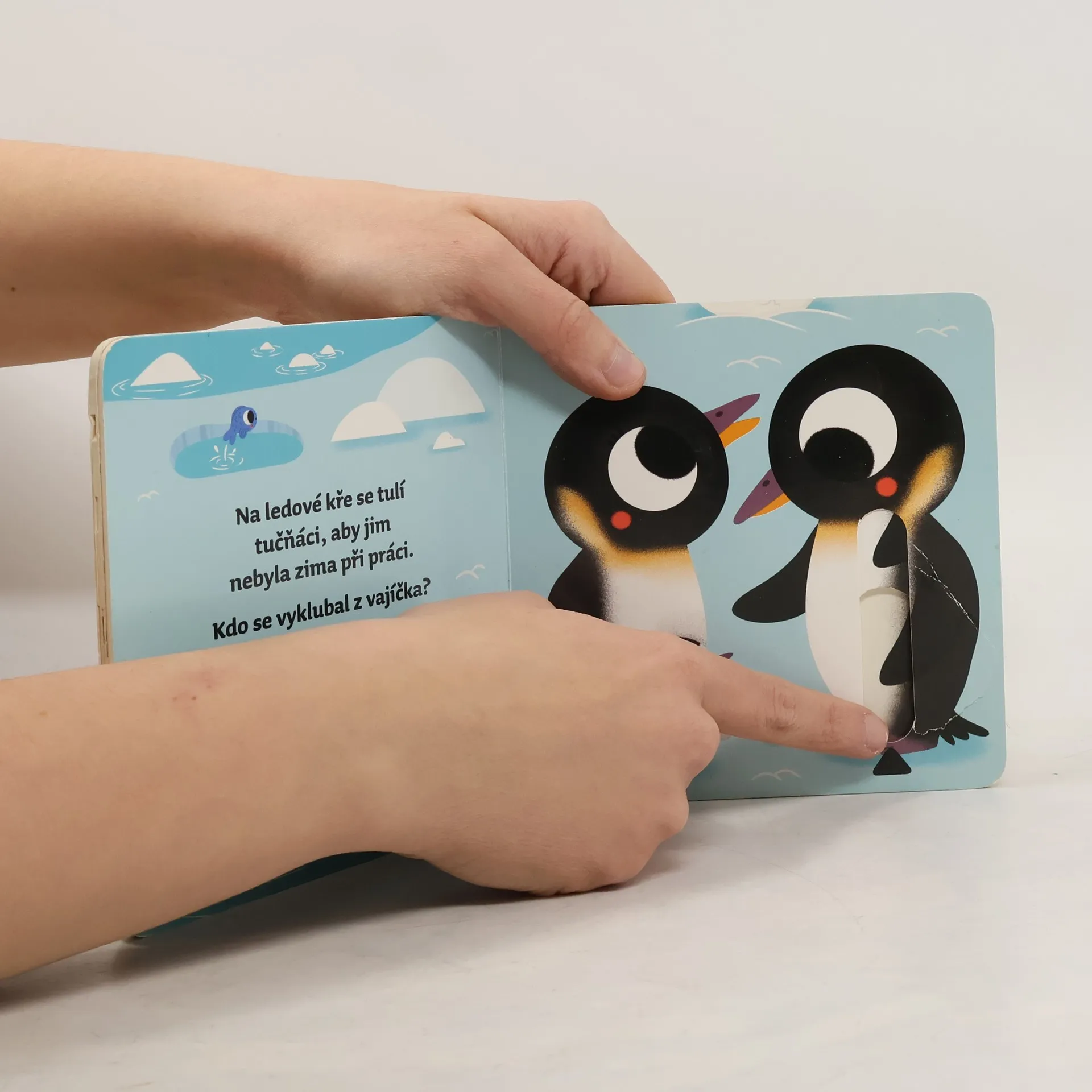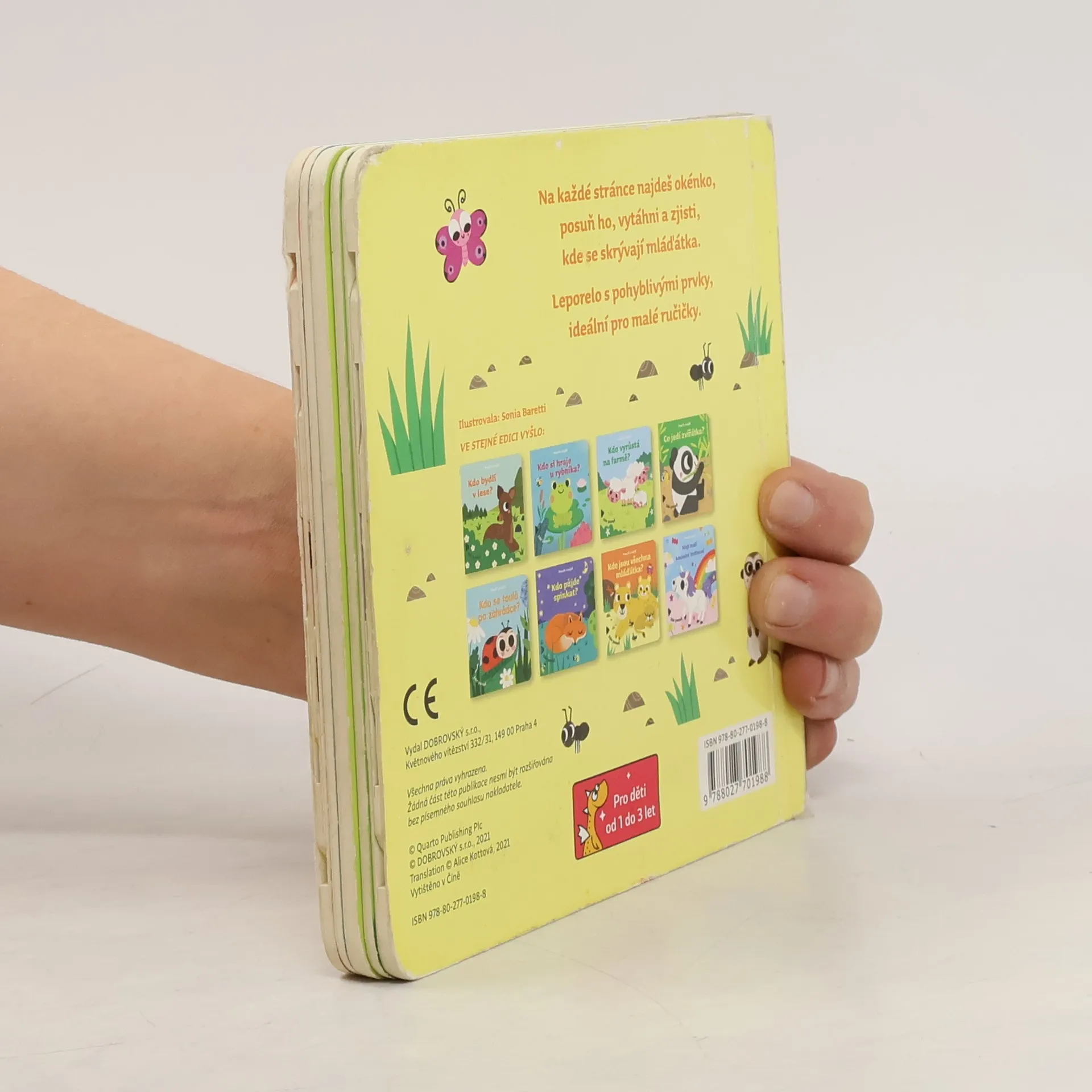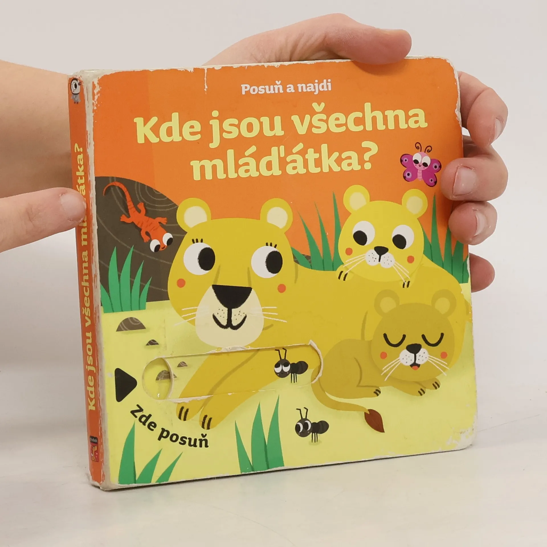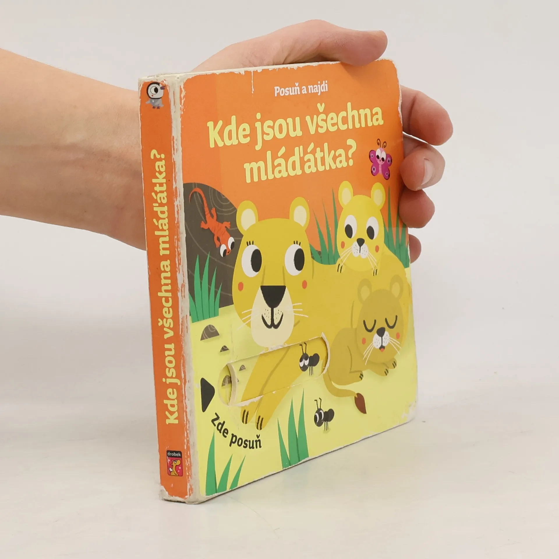 Na každé stránce najdeš okénko,posuň ho, vytáhni a zjisti,kde se skrývají mláďátka.Leporelo s pohyblivými prvky,ideální pro malé ručičky.