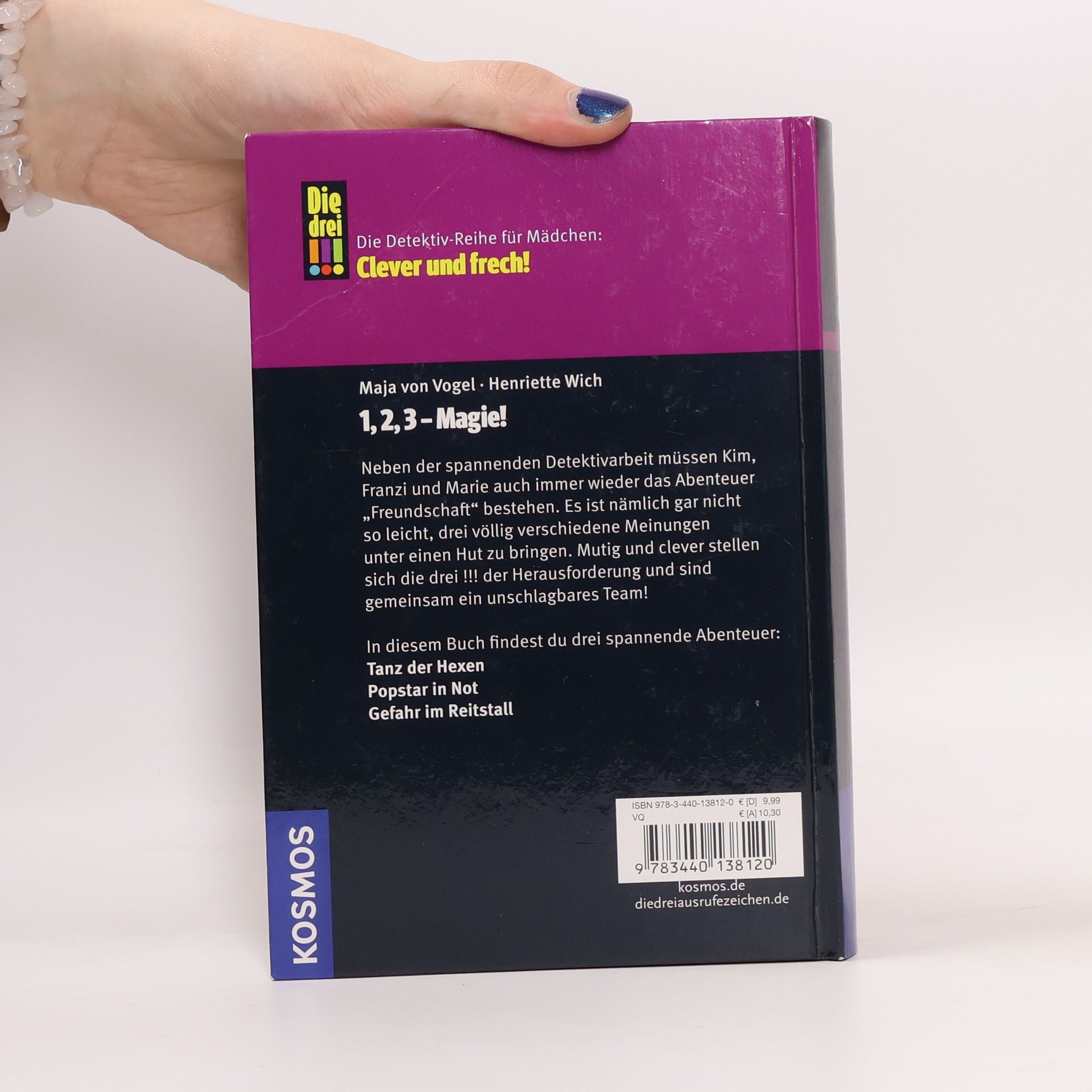 Kim, Franziska und Marie sind „Die drei !!!“. Mutig und clever ermitteln die drei Mädchen und sind jedem Fall gewachsen. Neben der aufregenden Detektivarbeit müssen Kim, Franzi und Marie immer wieder das Abenteuer „Freundschaft“ bestehen. Jeder der drei Fälle „Tanz der Hexen“, „Popstar in Not“, „Gefahr im Reitstall“ in diesem Band zeigt: „Die drei !!!“ sind ein unschlagbares Team.