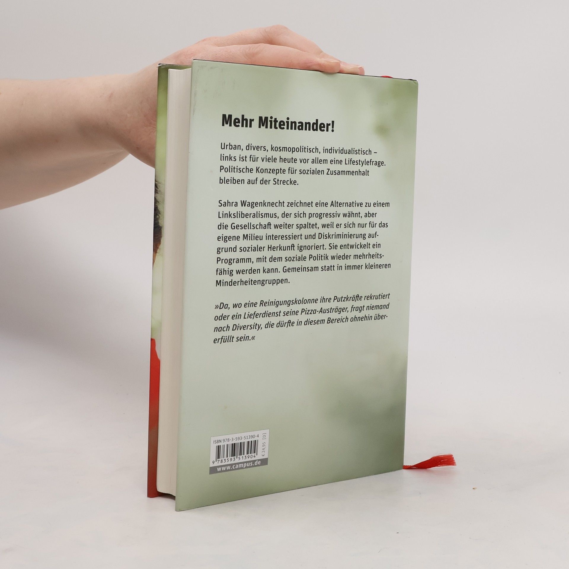 Urban, divers, kosmopolitisch, individualistisch – links ist für viele heute vor allem eine Lifestylefrage. Politische Konzepte für sozialen Zusammenhalt bleiben auf der Strecke, genauso wie schlecht verdienende Frauen, arme Zuwandererkinder, ausgebeutete Leiharbeiter und große Teile der Mittelschicht. Ob in den USA oder Europa: Wer sich auf Gendersternchen konzentriert statt auf Chancengerechtigkeit und dabei Kultur und Zusammengehörigkeitsgefühl der Bevölkerungsmehrheit vernachlässigt, arbeitet der politischen Rechten in die Hände. Sahra Wagenknecht zeichnet in ihrem Buch eine Alternative zu einem Linksliberalismus, der sich progressiv wähnt, aber die Gesellschaft weiter spaltet, weil er sich nur für das eigene Milieu interessiert und Diskriminierung aufgrund sozialer Herkunft ignoriert. Sie entwickelt ein Programm, mit dem linke Politik wieder mehrheitsfähig werden kann. Gemeinsam statt egoistisch.