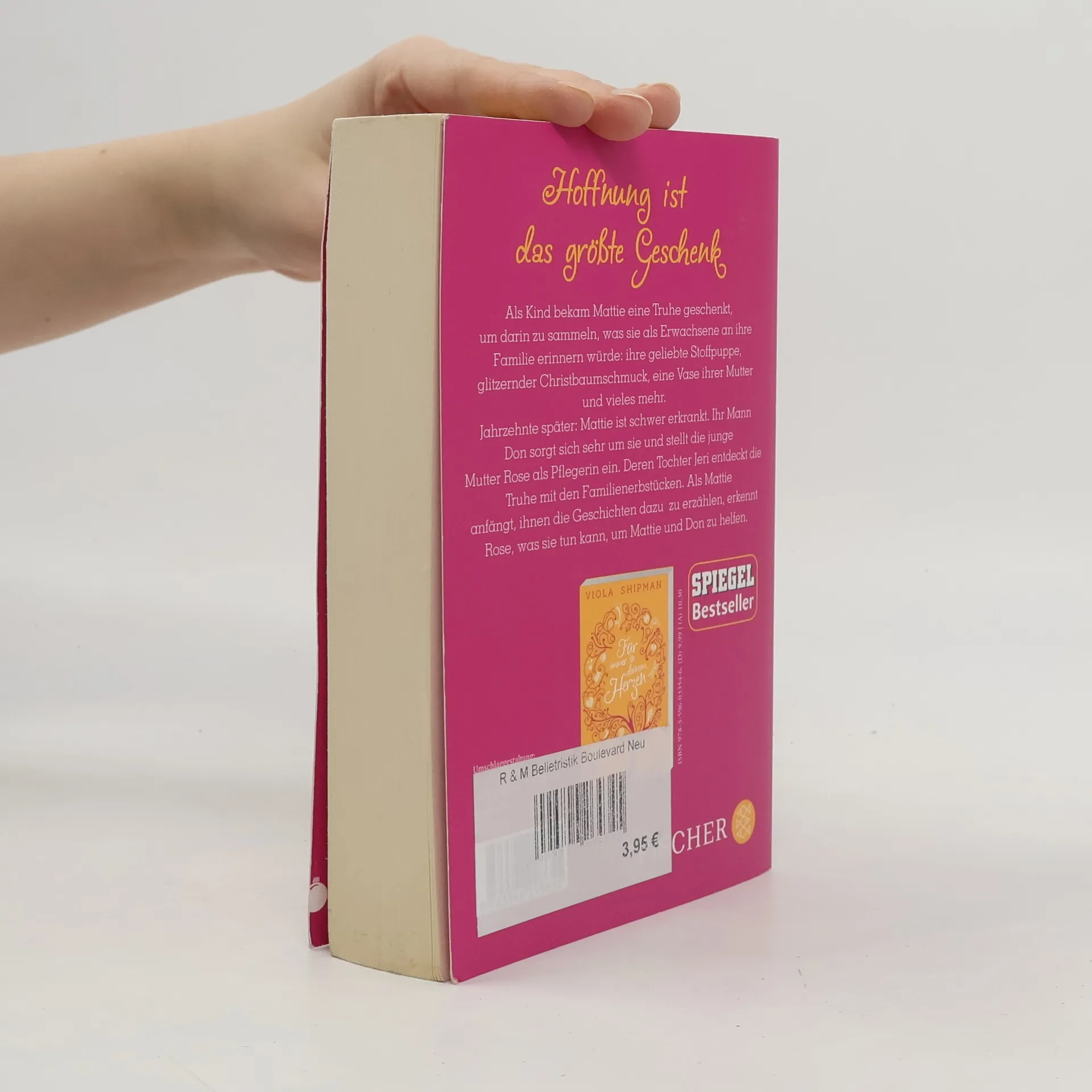 Hoffnung ist das größte Geschenk. Der neue Roman der Erfolgsautorin Viola Shipman. ›So groß wie deine Träume‹ ist eine hochemotionale, tief berührende Geschichte über drei Menschen, die neuen Mut schöpfen und ihrem Leben Sinn geben, indem sie füreinander da sind. Im Alter von zehn Jahren bekommt Mattie eine Truhe geschenkt, um darin alles zu sammeln, was sie als Erwachsene an ihre Familie erinnern würde: ihre geliebte Stoffpuppe, glitzernder Christbaumschmuck, eine Vase ihrer Mutter, und vieles mehr. Jahrzehnte später: Mattie ist inzwischen schwer erkrankt, ihr Mann Don sorgt sich sehr um sie und stellt Rose, eine junge, alleinerziehende Mutter, als Pflegerin ein. Rose stößt auf die verstaubte, vergessene Truhe und bringt sie Mattie. Nach und nach erzählt Mattie ihr die Geschichten und Geheimnisse, die sich um die Familienerbstücke ranken. Rose erkennt, was sie tun kann, um Mattie und Don zu helfen, in ihrem letzten gemeinsamen Jahr füreinander da zu sein.